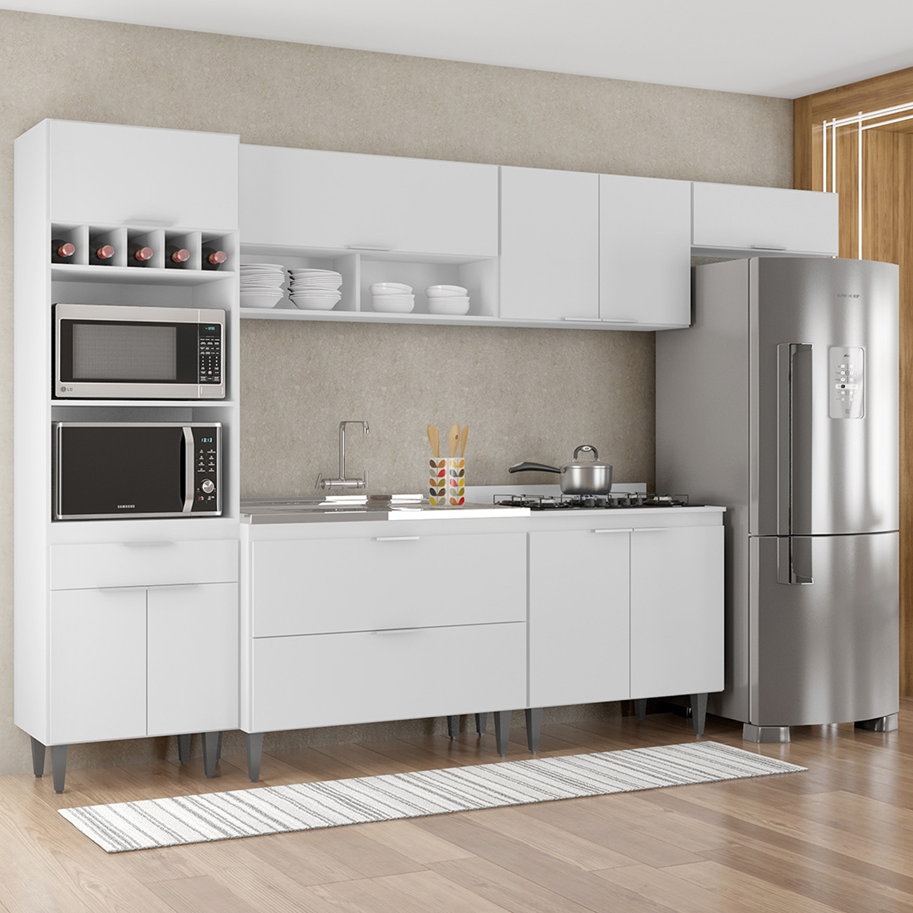 - Nichos para micro-ondas e forno elétrico.