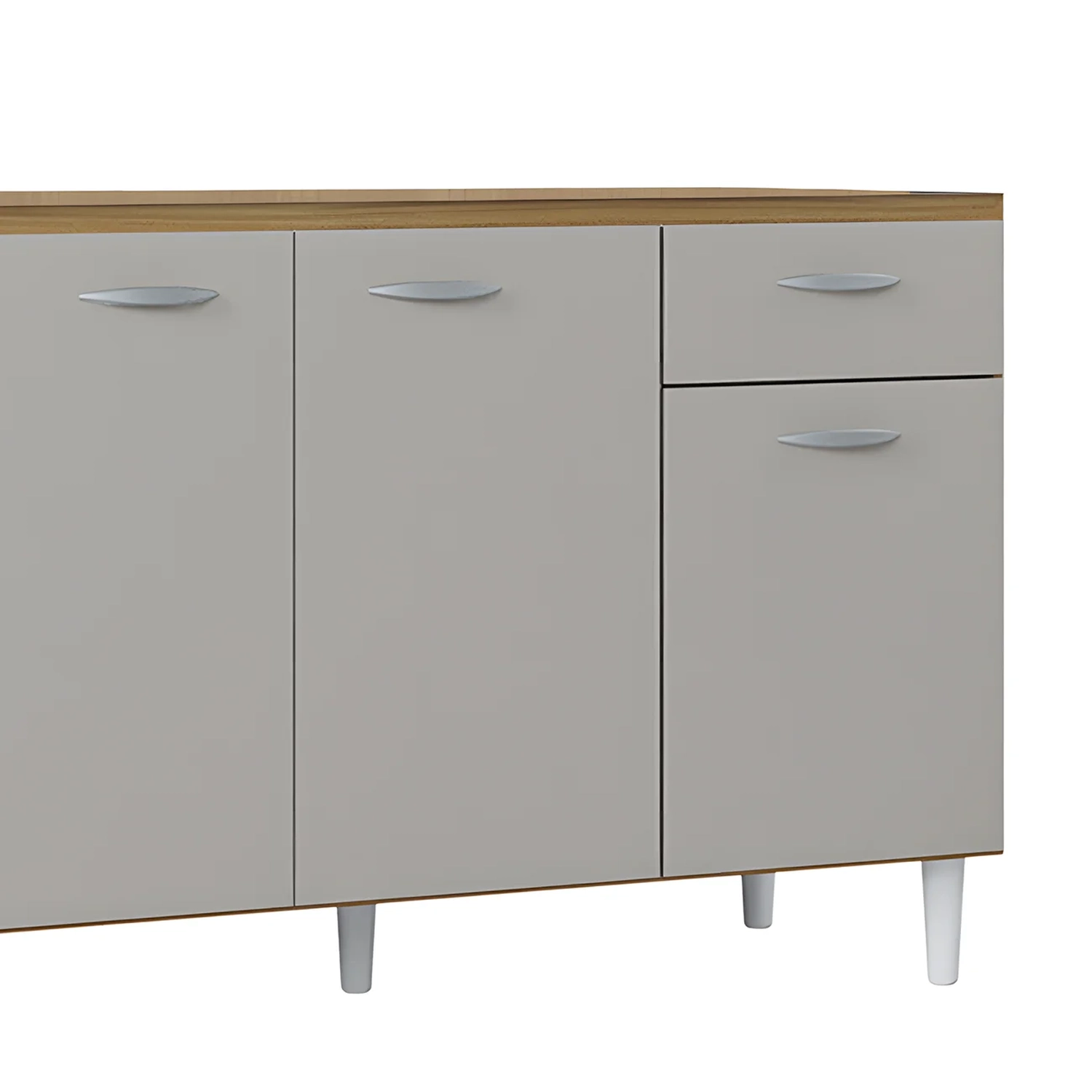 O Balcão para Pia possui três portas e uma gaveta que garantem amplo espaço interno para panelas, utensílios e mantimentos. Compacto e funcional, é perfeito para cozinhas de diferentes tamanhos e pode ser combinado com pia ou tampo.