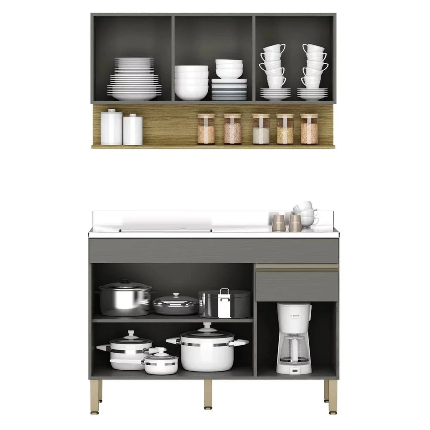 Você quer renovar a sua Cozinha deixando mais moderna e funcional? Então conheça o Armário de Cozinha e Balcão com Pia 120cm Lina Z06 Gris/Freijó, da Mpozenato!
