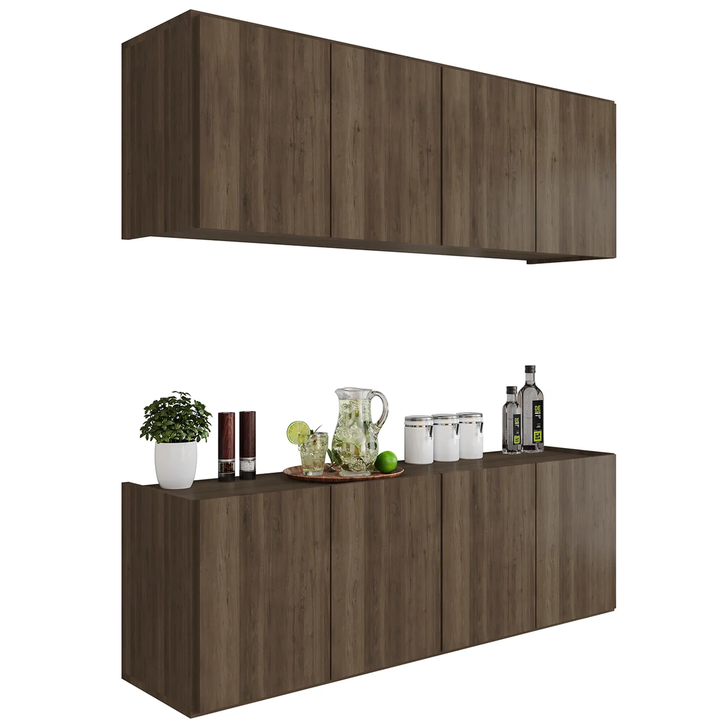 O Armário Aéreo e Balcão Suspenso para Cozinha é a solução perfeita para quem busca versatilidade e organização sem comprometer o estilo. Com 118cm de largura cada, esses dois móveis oferecem um amplo espaço interno, ideal para armazenar utensílios, mantimentos e outros itens essenciais da sua cozinha.