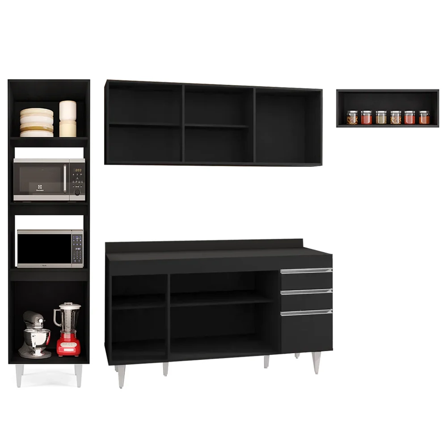 Confira o Armário de Cozinha Modulada 4 Peças CP11 Balcão com Tampo Preto, da Lumil e torne a sua Cozinha muito mais bonita e aconchegante!