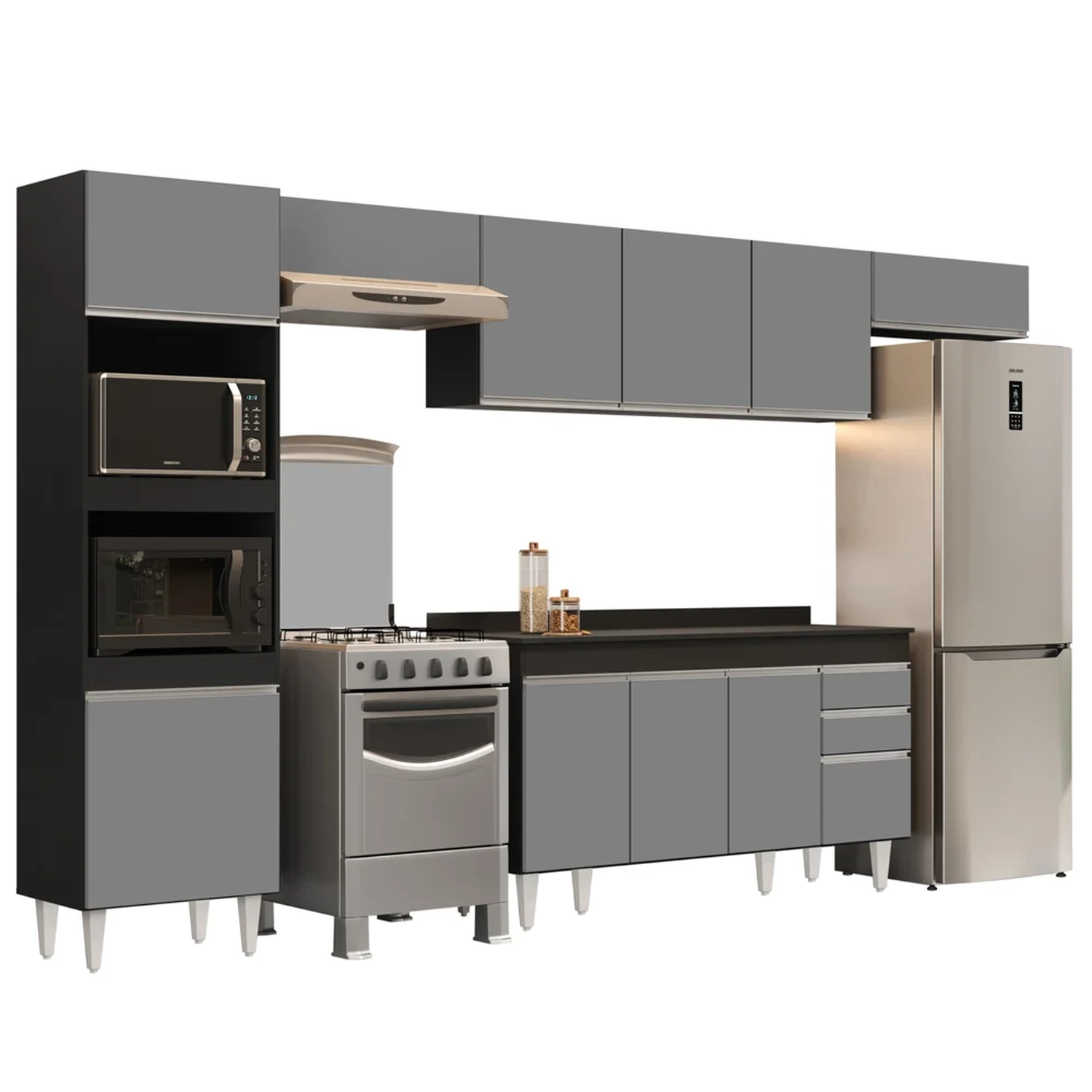 Nada mais prazeroso que ter uma Cozinha linda, funcional e prática, não é mesmo? Então, vem conhecer o Armário de Cozinha Modulada 5 Peças CP14 Balcão com Tampo Preto/Cinza, da Lumil e surpreenda-se!