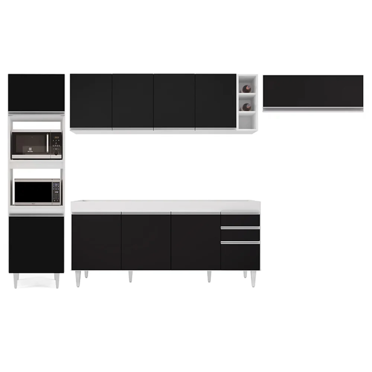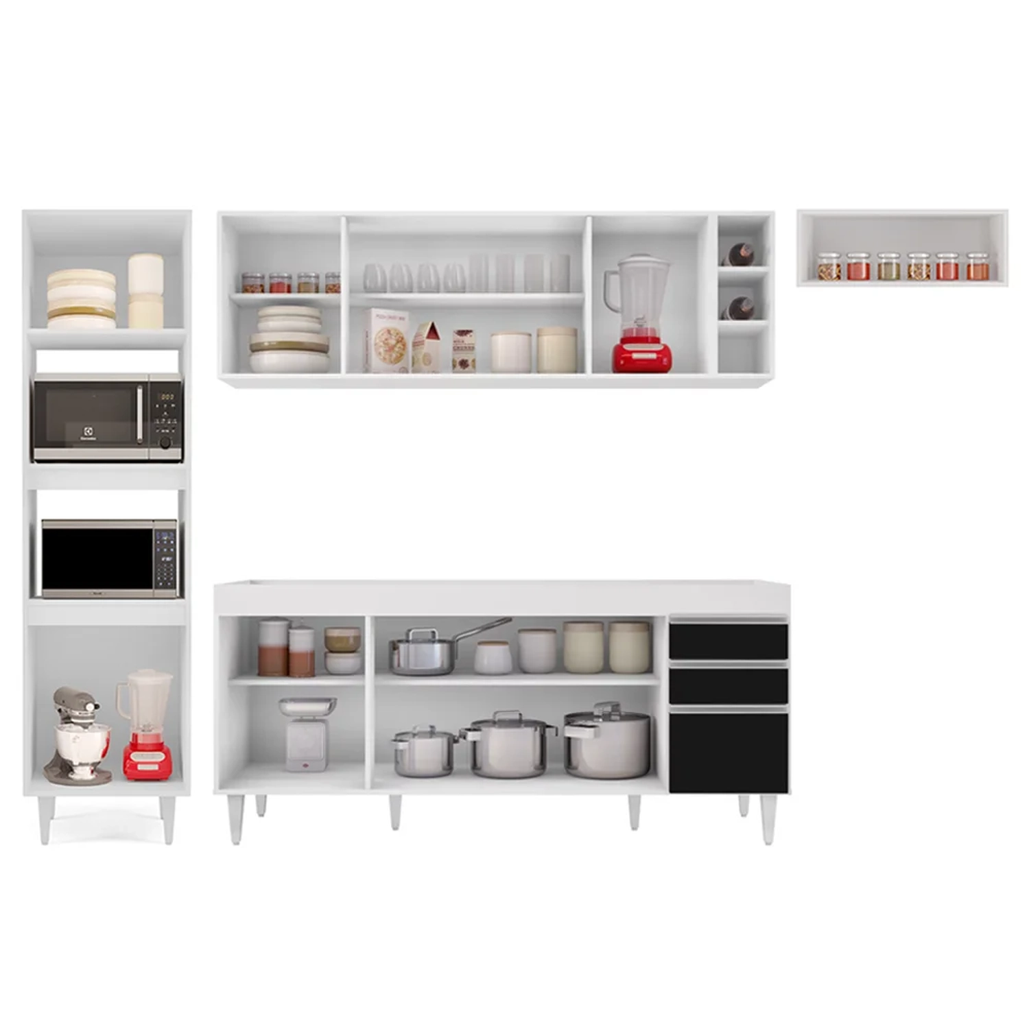 Com design moderno e elegante, o Armário de Cozinha Modulada 5 Peças CP16 Balcão Branco/Preto, da Lumil, vai facilitar a sua rotina e deixar tudo no devido lugar, confira os detalhes!