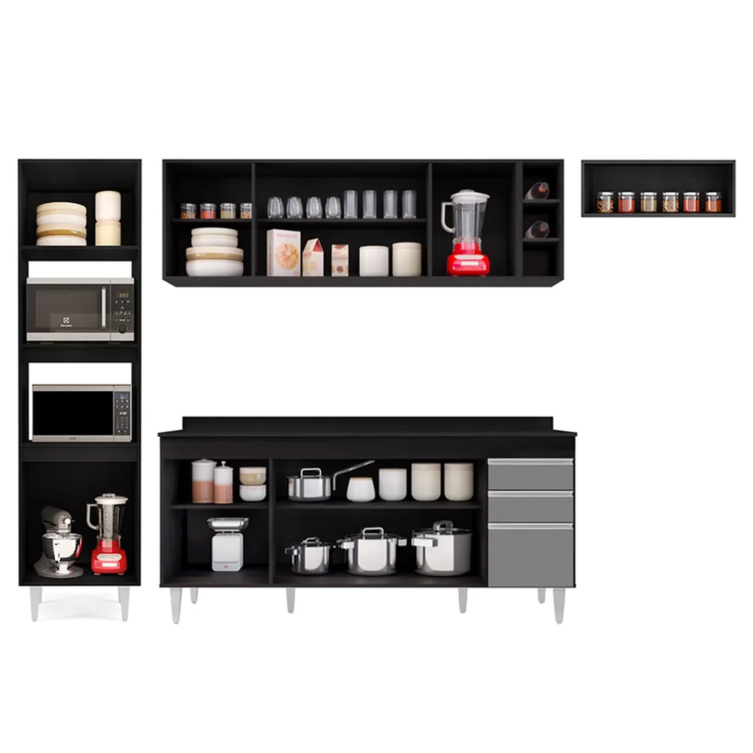 Em um cômodo que exige funcionalidade, o Armário de Cozinha Modulada 5 Peças CP17 Balcão com Tampo Preto/Cinza, da Lumil, é a escolha perfeita para manter tudo no devido lugar, vem conhecer os detalhes!