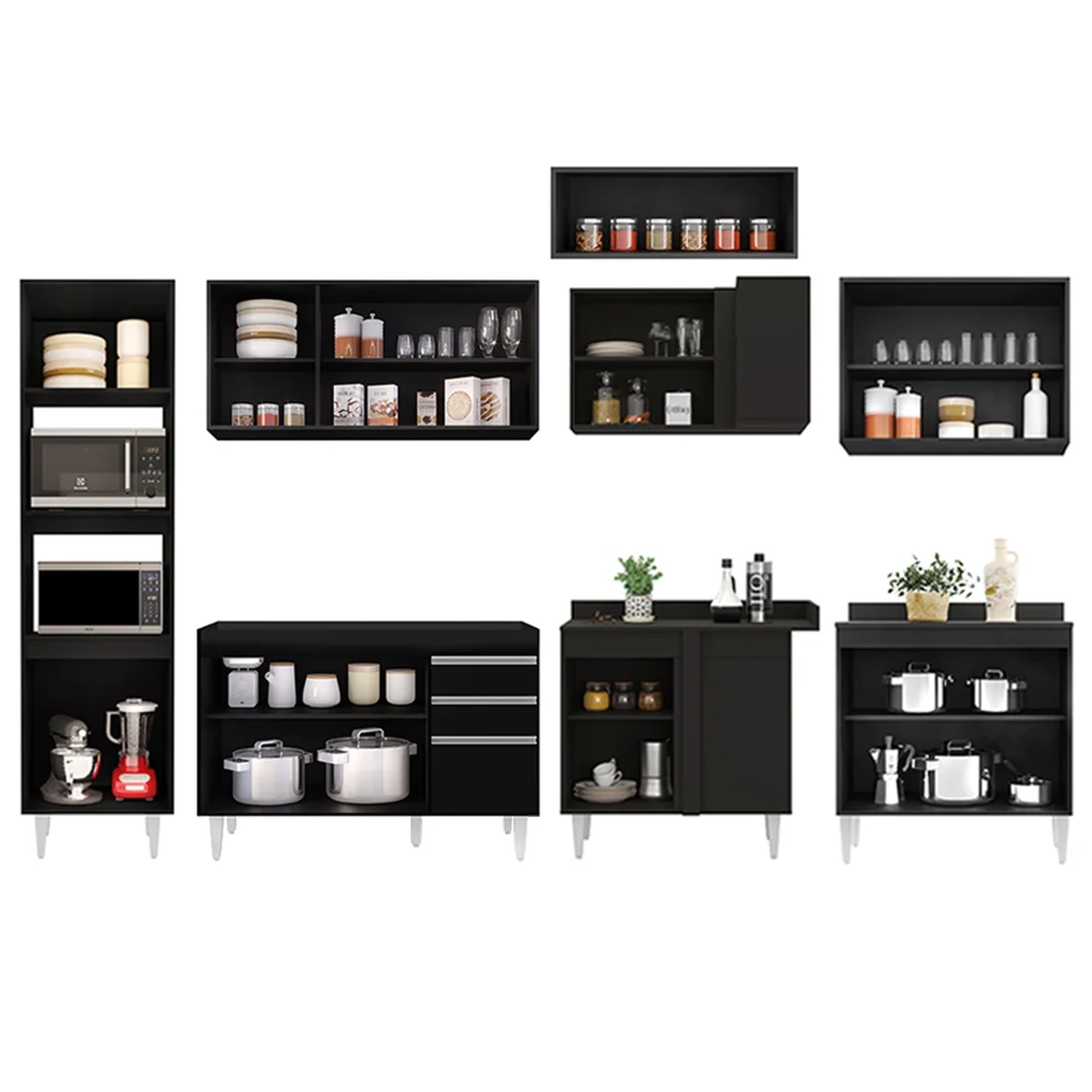 O Armário de Cozinha Modulada de Canto 8 Peças CP01 Balcão Preto, da Lumil, é uma ótima opção para quem busca praticidade e organização.