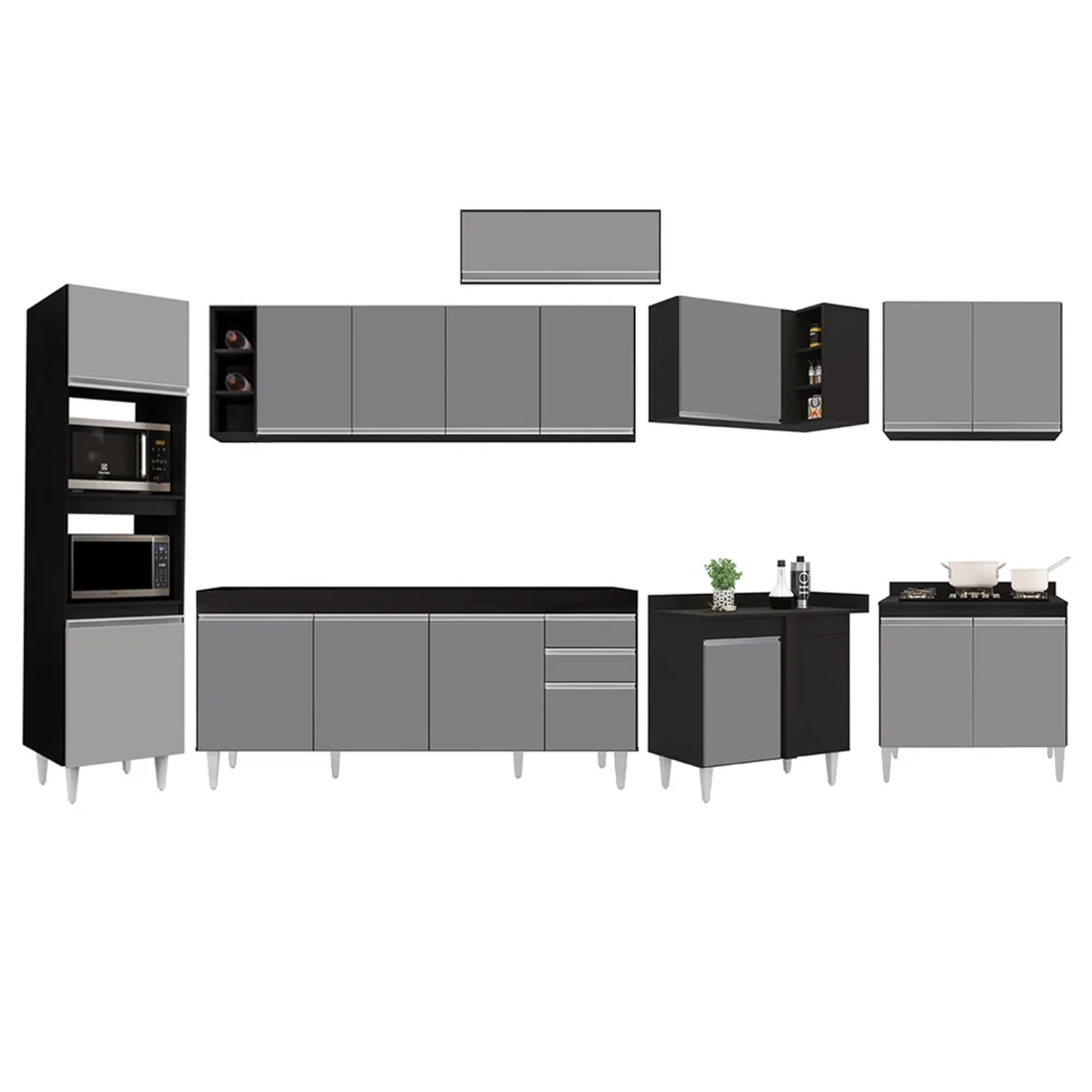 Se você está procurando uma cozinha que seja bonita e funcional, conheça o Armário de Cozinha Modulada de Canto 9 Peças CP04 Balcão Preto/Cinza, da Lumil e surpreenda-se!