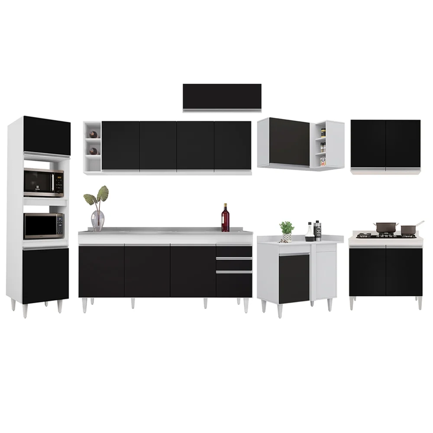 A Cozinha dos sonhos existe! Vem conhecer o Armário de Cozinha Modulada de Canto 9 Peças CP06 com Pia Inox Branco/Preto, da Lumil e apaixone-se!
