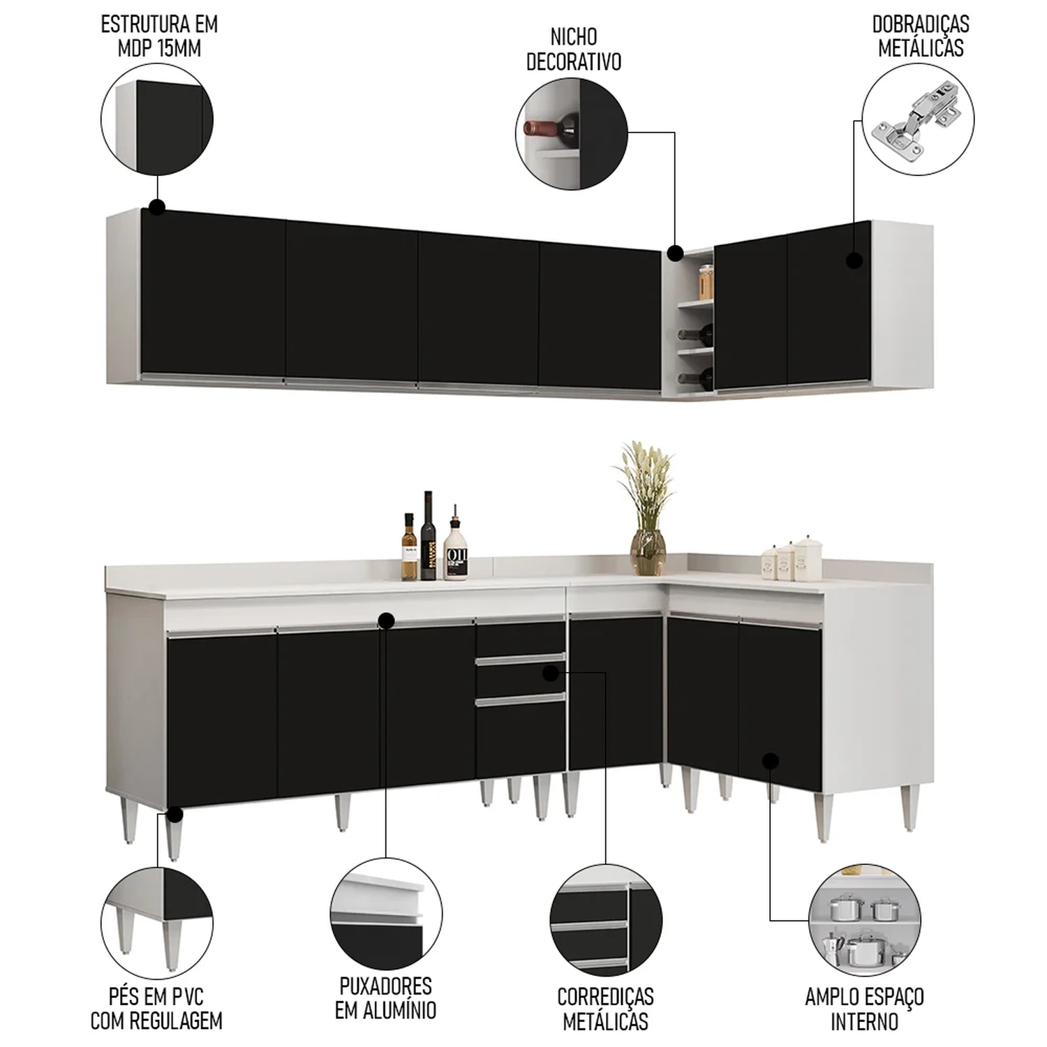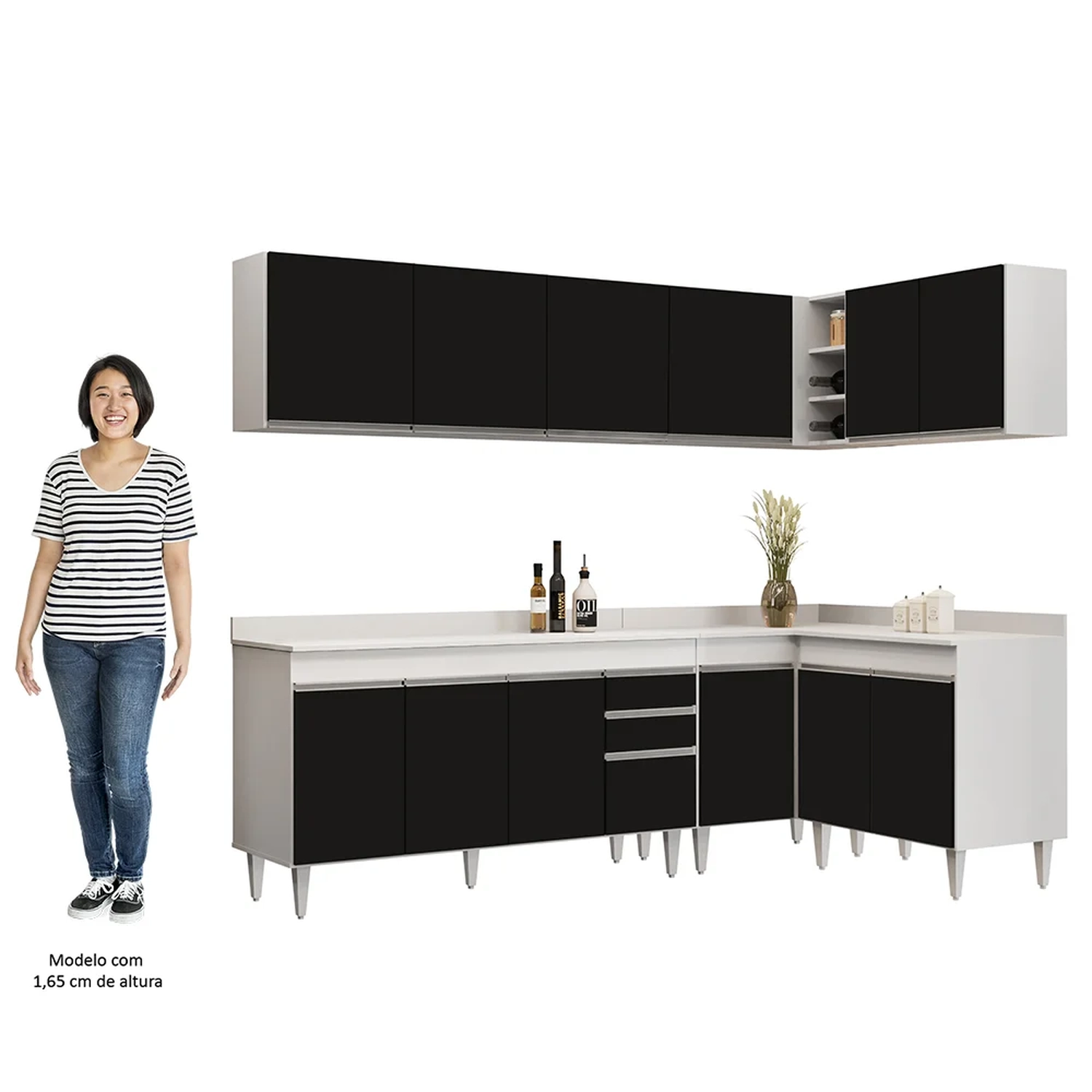Procura uma cozinha prática e funcional?! Então, acaba de encontrar. Com o Armário de Cozinha Modulado de Canto 6 Peças CP32 Balcão com Tampo Branco/Preto, da Lumil, você terá tudo o que precisa ao seu alcance. Composto por 6 peças inteligentemente projetadas, esse armário modulado oferece uma distribuição interna perfeita para organizar todos os seus utensílios.