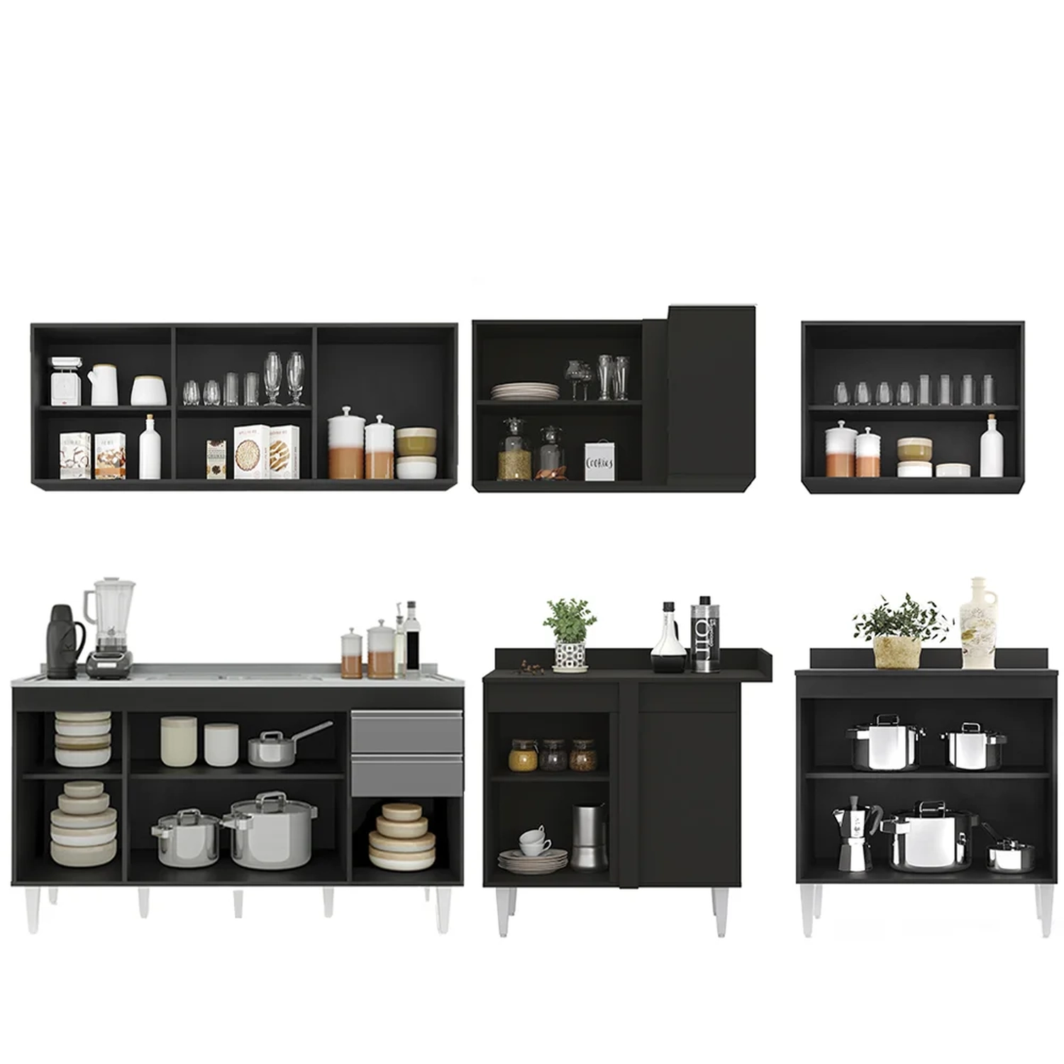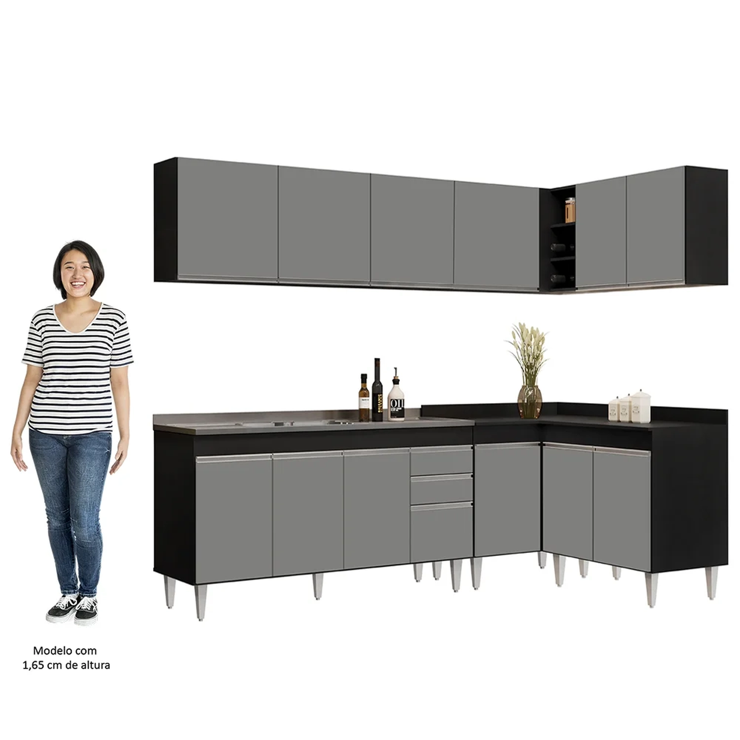 Procura uma cozinha prática e funcional?! Então, acaba de encontrar. Com o Armário de Cozinha Modulado de Canto 6 Peças CP33 com Pia Inox Preto/Cinza, da Lumil, você terá tudo o que precisa ao seu alcance. Composto por 6 peças inteligentemente projetadas, esse armário modulado oferece uma distribuição interna perfeita para organizar todos os seus utensílios.