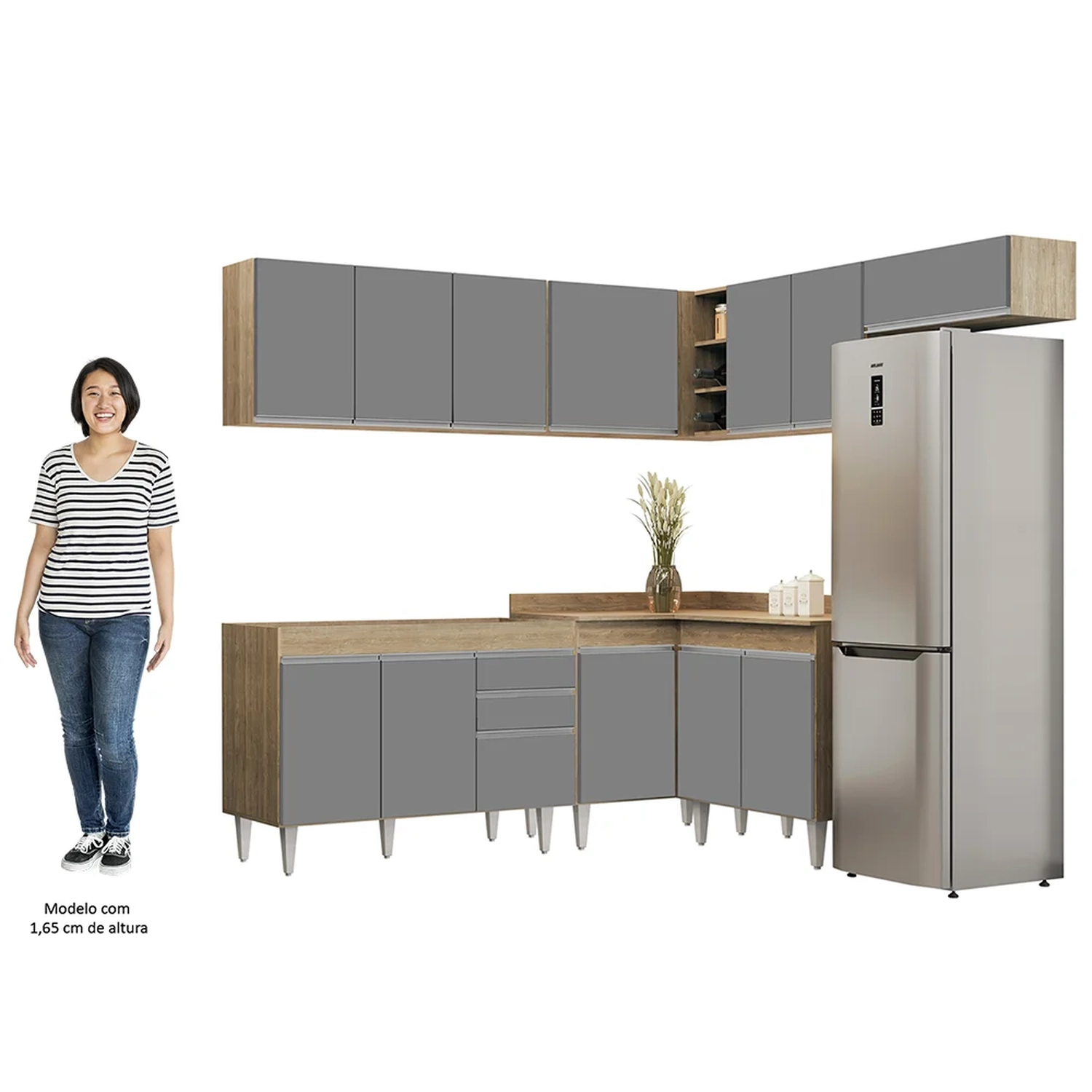 Além disso, o acabamento BP confere a esse jogo de cozinha completo uma maior resistência contra riscos e umidade, garantindo sua durabilidade por muito tempo. Já os pés ajustáveis permitem que você nivelar o móvel em qualquer tipo de piso. Para completar, o design contemporâneo dessa cozinha de canto se adapta facilmente a qualquer estilo de decoração, ao passo que a configuração de canto otimiza a circulação no ambiente.