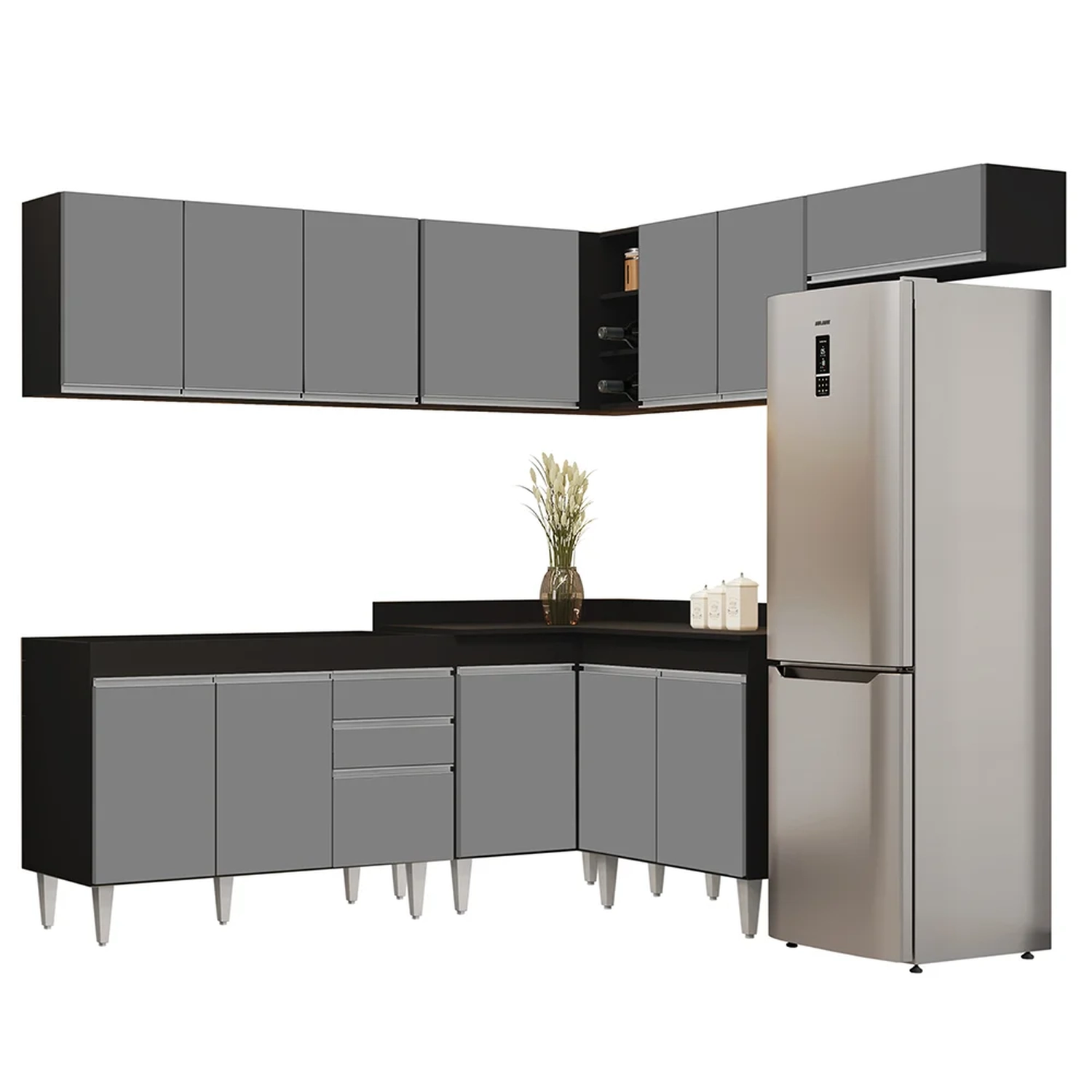 Além disso, o acabamento BP confere a esse jogo de cozinha completo uma maior resistência contra riscos e umidade, garantindo sua durabilidade por muito tempo. Já os pés ajustáveis permitem que você nivelar o móvel em qualquer tipo de piso. Para completar, o design contemporâneo dessa cozinha de canto se adapta facilmente a qualquer estilo de decoração, ao passo que a configuração de canto otimiza a circulação no ambiente.