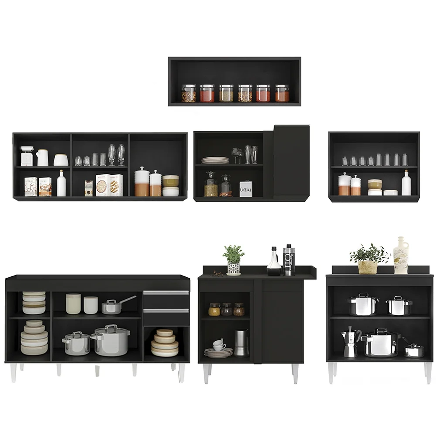 Procura uma cozinha prática e funcional?! Então, acaba de encontrar. Com o Armário de Cozinha Modulado de Canto 7 Peças CP22 Balcão sem Tampo Preto, da Lumil, você terá tudo o que precisa ao seu alcance. Composto por 7 peças inteligentemente projetadas, esse armário modulado oferece uma distribuição interna perfeita para organizar todos os seus utensílios.