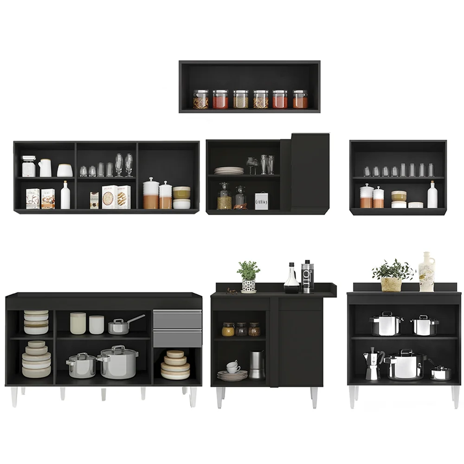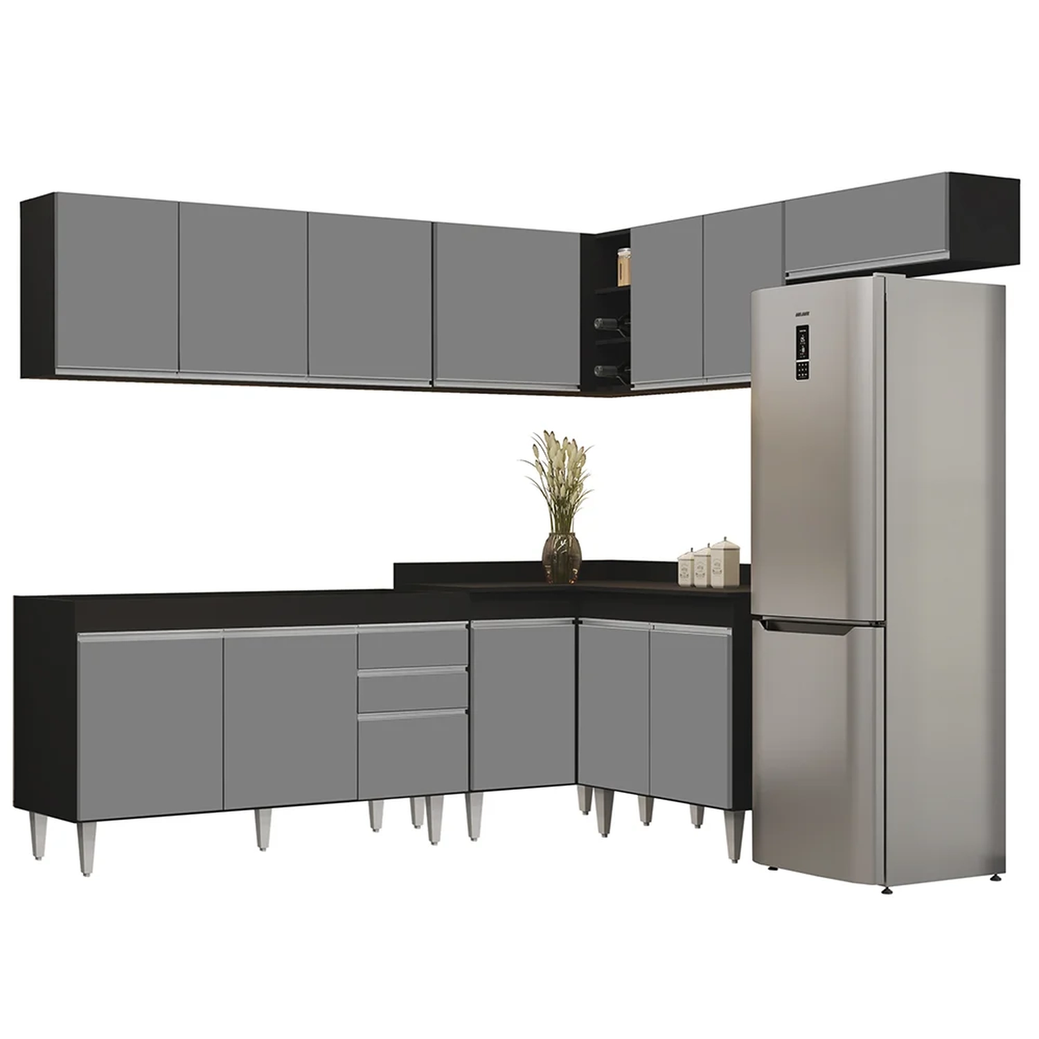 Procura uma cozinha prática e funcional?! Então, acaba de encontrar. Com o Armário de Cozinha Modulado de Canto 7 Peças CP22 Balcão sem Tampo Preto/Cinza, da Lumil, você terá tudo o que precisa ao seu alcance. Composto por 7 peças inteligentemente projetadas, esse armário modulado oferece uma distribuição interna perfeita para organizar todos os seus utensílios.