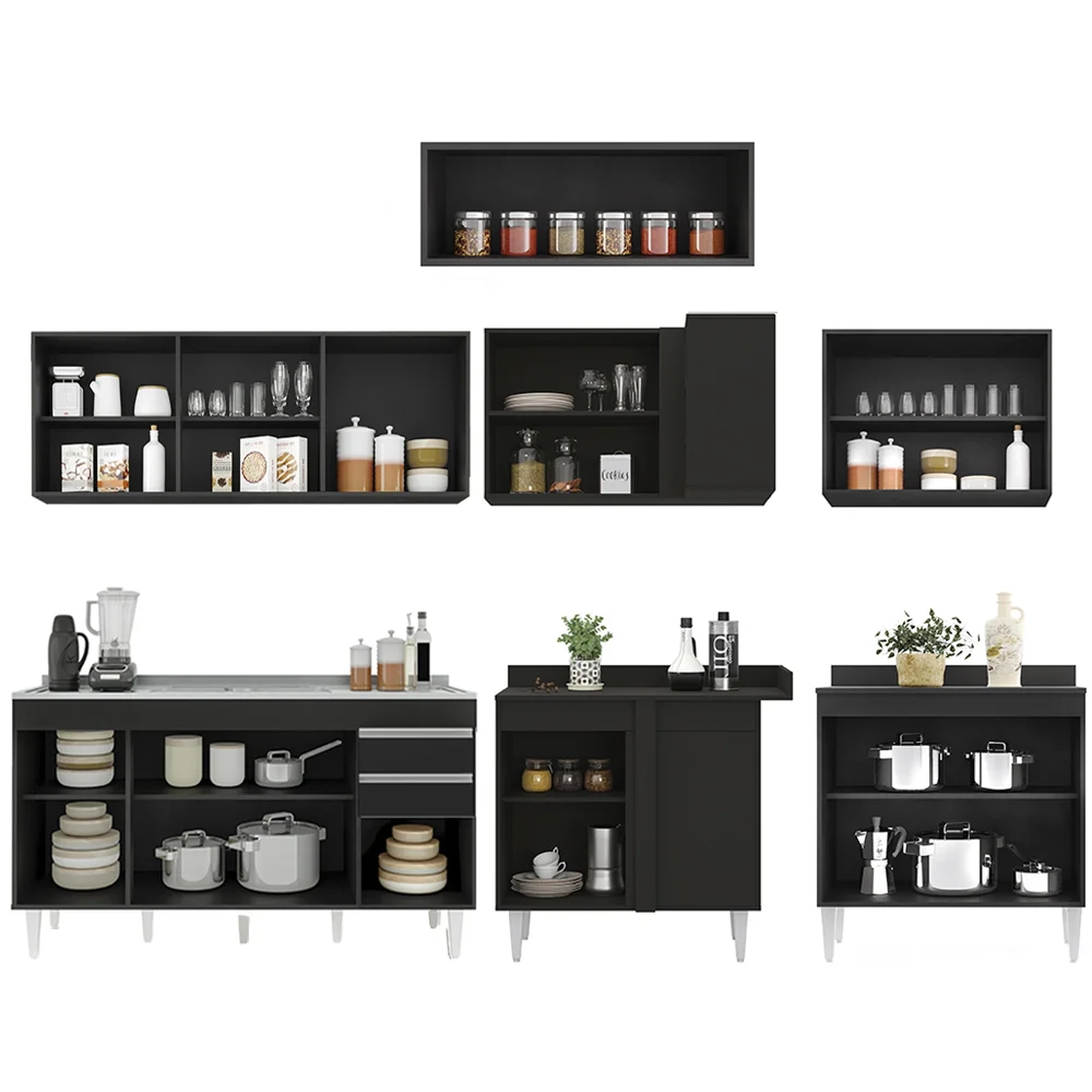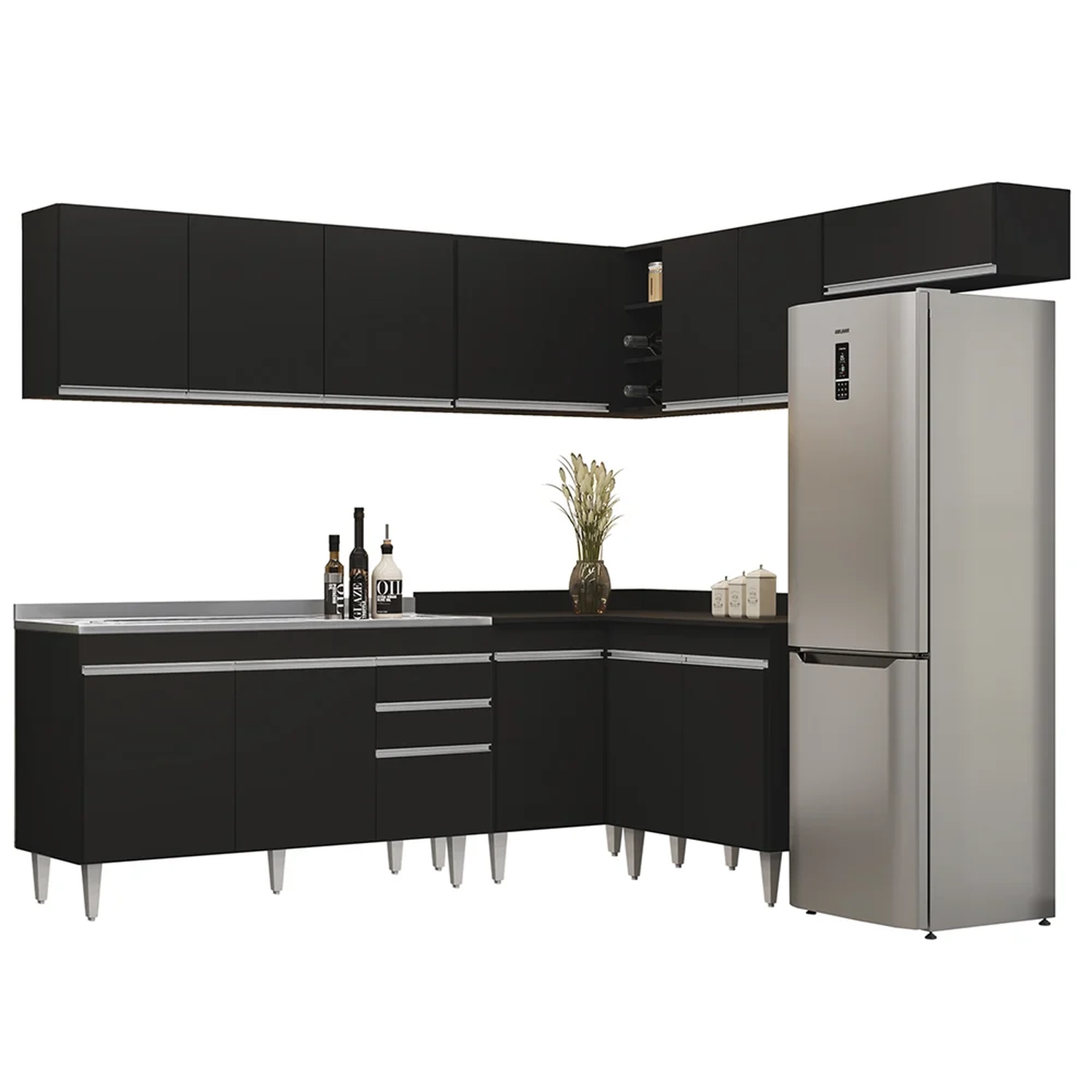 Procura uma cozinha prática e funcional?! Então, acaba de encontrar. Com o Armário de Cozinha Modulado de Canto 7 Peças CP24 com Pia Inox Preto, da Lumil, você terá tudo o que precisa ao seu alcance. Composto por 7 peças inteligentemente projetadas, esse armário modulado oferece uma distribuição interna perfeita para organizar todos os seus utensílios.