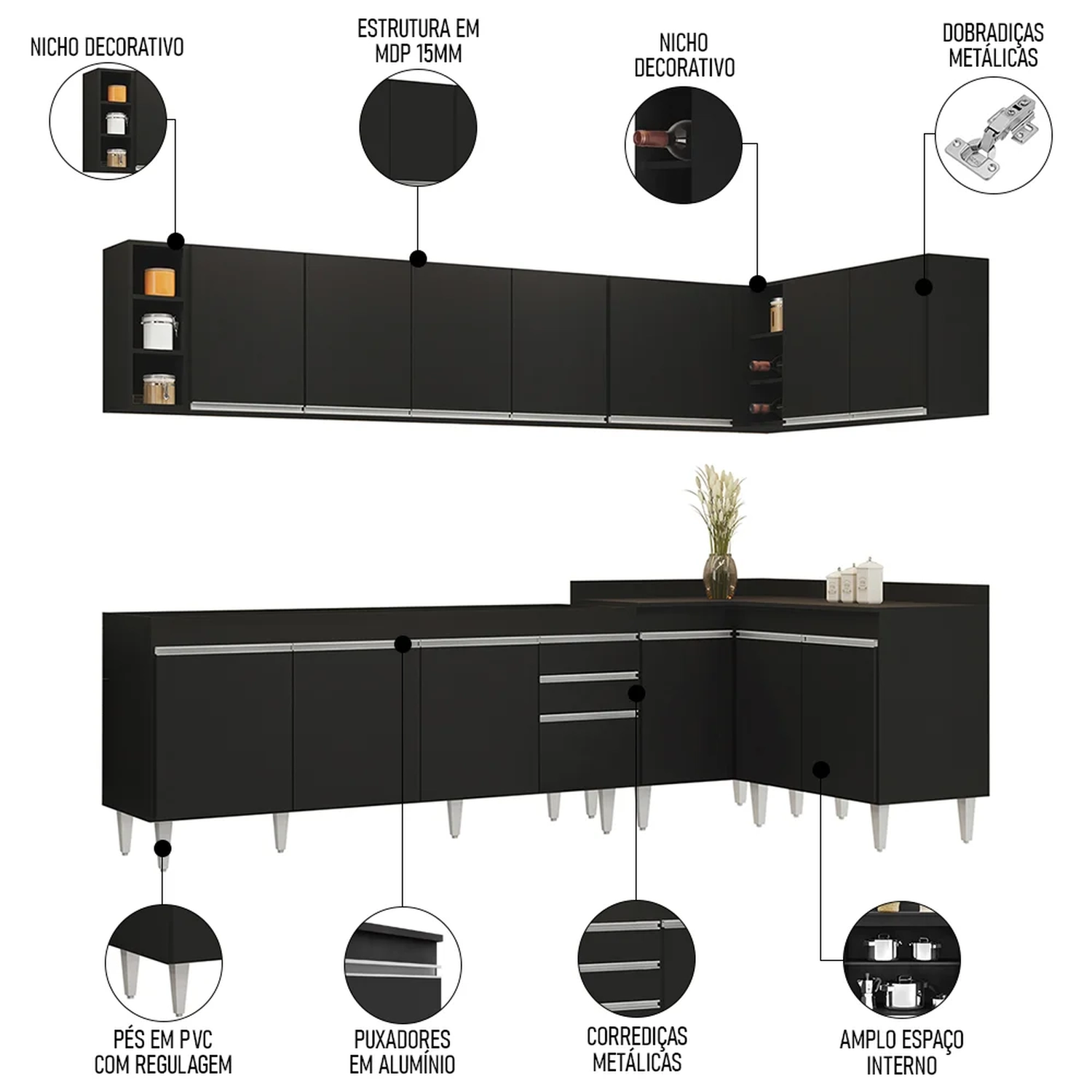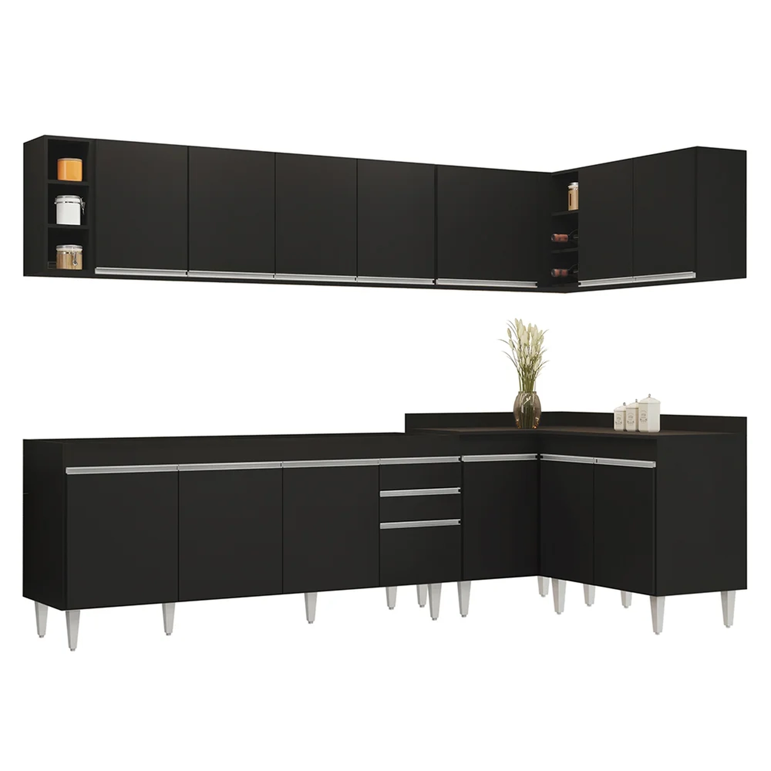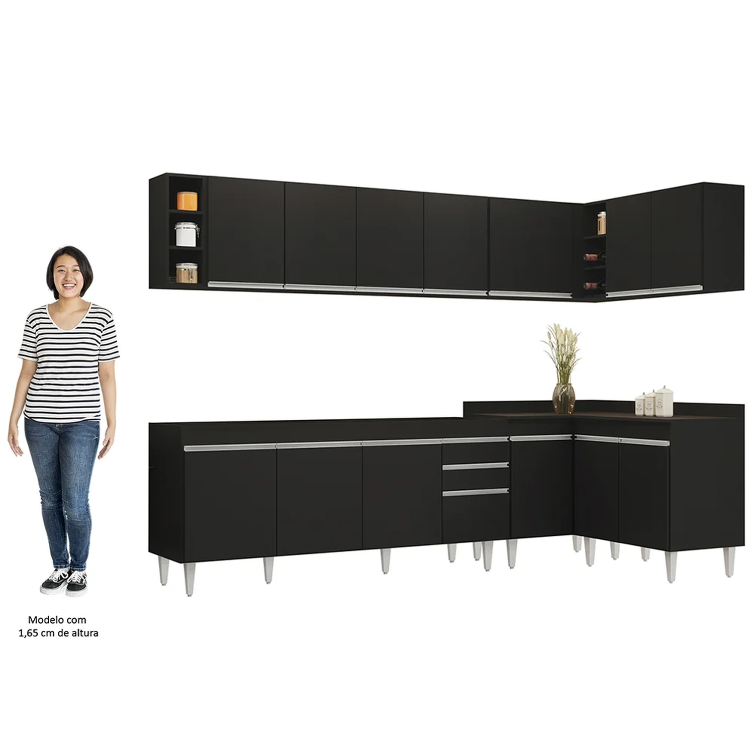 Renove a sua cozinha com o Armário de Cozinha Modulado de Canto 7 Peças CP34 Balcão sem Tampo Preto, da Lumil, você terá tudo o que precisa ao seu alcance. Composto por 7 peças inteligentemente projetadas, esse armário modulado oferece uma distribuição interna perfeita para organizar todos os seus utensílios.