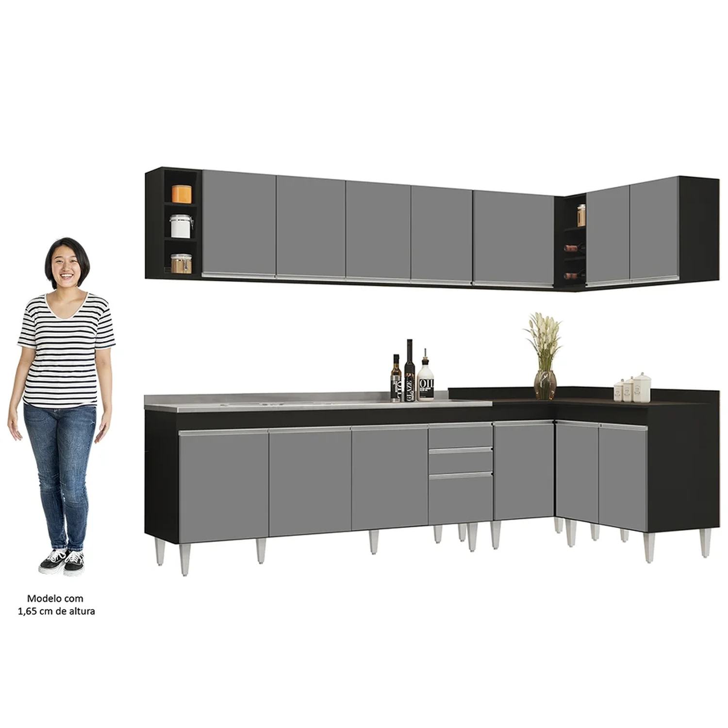 Renove a sua cozinha com o Armário de Cozinha Modulado de Canto 7 Peças CP36 com Pia Inox Preto/Cinza, da Lumil, você terá tudo o que precisa ao seu alcance. Composto por 7 peças inteligentemente projetadas, esse armário modulado oferece uma distribuição interna perfeita para organizar todos os seus utensílios.