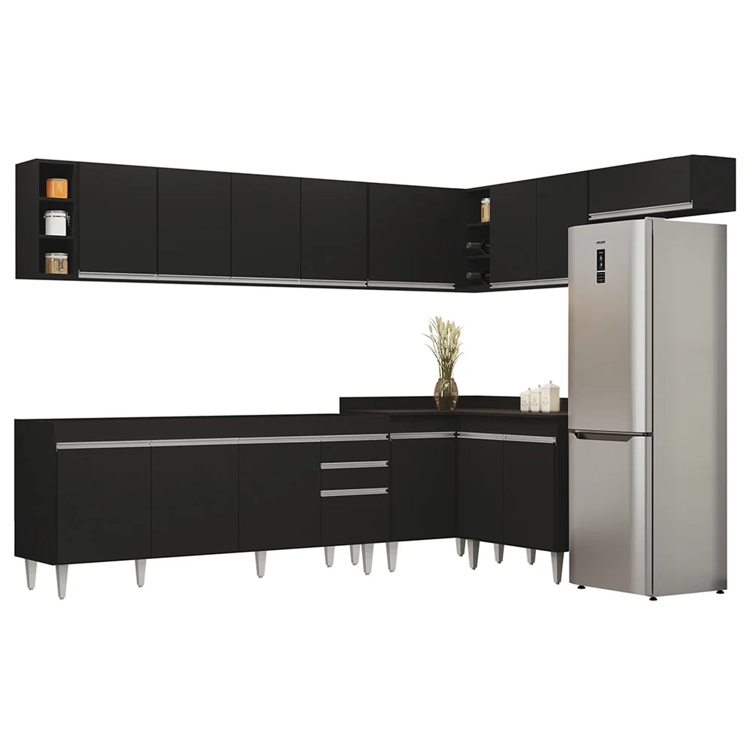 Renove a sua cozinha com o Armário de Cozinha Modulado de Canto 8 Peças CP25 Balcão sem Tampo Preto, da Lumil, você terá tudo o que precisa ao seu alcance. Composto por 8 peças inteligentemente projetadas, esse armário modulado oferece uma distribuição interna perfeita para organizar todos os seus utensílios.