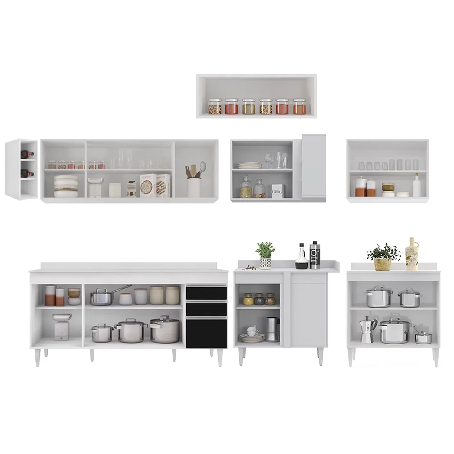Renove a sua cozinha com o Armário de Cozinha Modulado de Canto 8 Peças CP26 Balcão com Tampo Branco/Preto, da Lumil, você terá tudo o que precisa ao seu alcance. Composto por 8 peças inteligentemente projetadas, esse armário modulado oferece uma distribuição interna perfeita para organizar todos os seus utensílios.