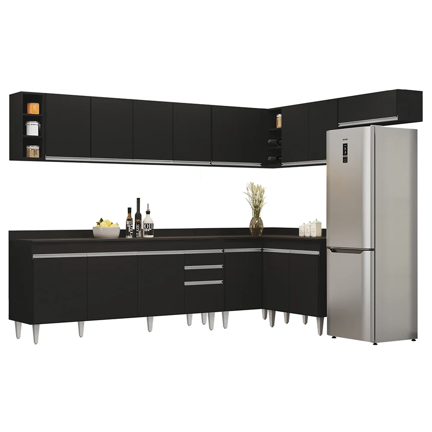 Renove a sua cozinha com o Armário de Cozinha Modulado de Canto 8 Peças CP26 Balcão com Tampo Preto, da Lumil, você terá tudo o que precisa ao seu alcance. Composto por 8 peças inteligentemente projetadas, esse armário modulado oferece uma distribuição interna perfeita para organizar todos os seus utensílios.