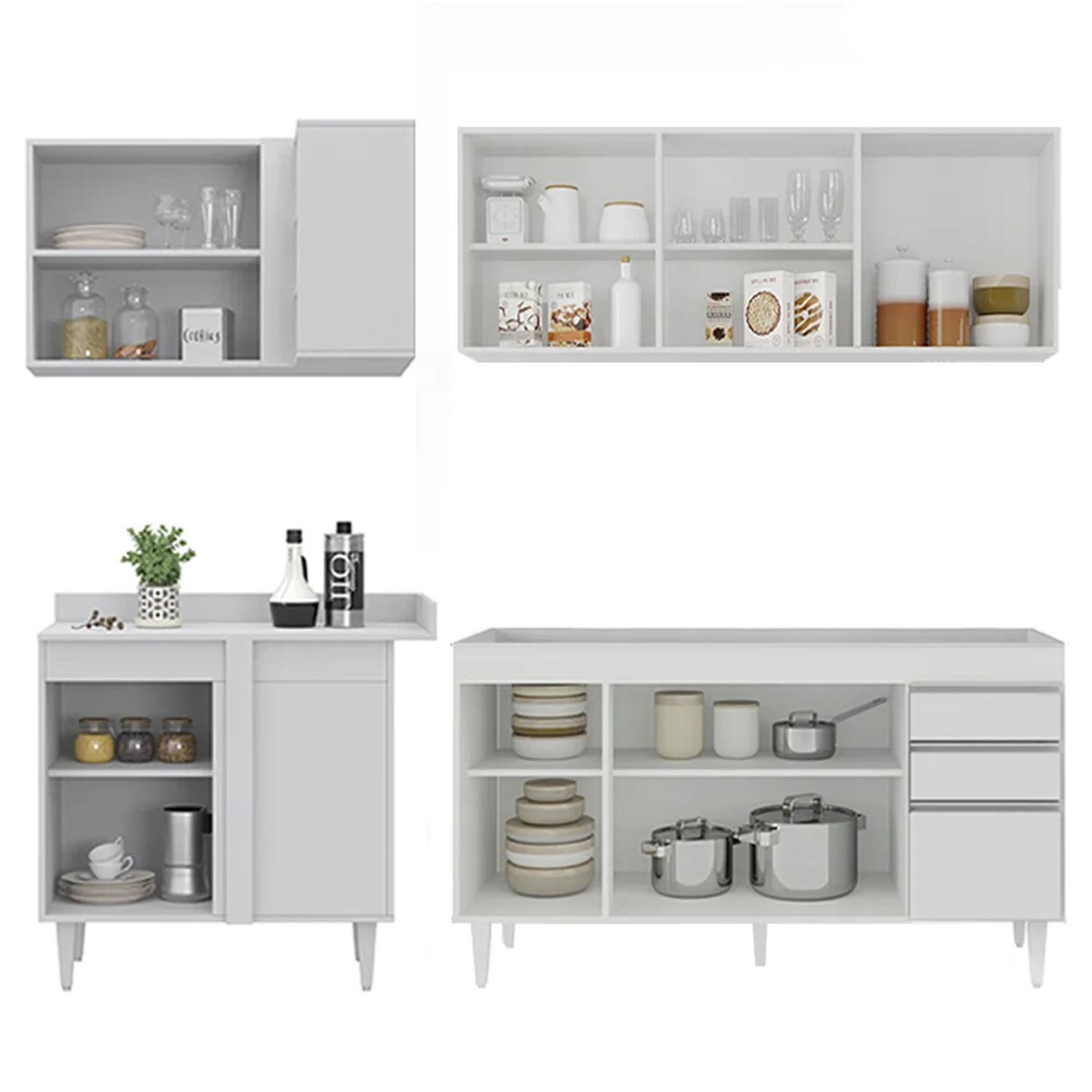 Procura uma cozinha prática e funcional?! Então, acaba de encontrar. Com o Armário de Cozinha Modulado de Canto Direito 4 Peças CP40 Balcão sem Tampo Branco, da Lumil, você terá tudo o que precisa ao seu alcance. Composto por 4 peças inteligentemente projetadas, esse armário modulado oferece uma distribuição interna perfeita para organizar todos os seus utensílios.