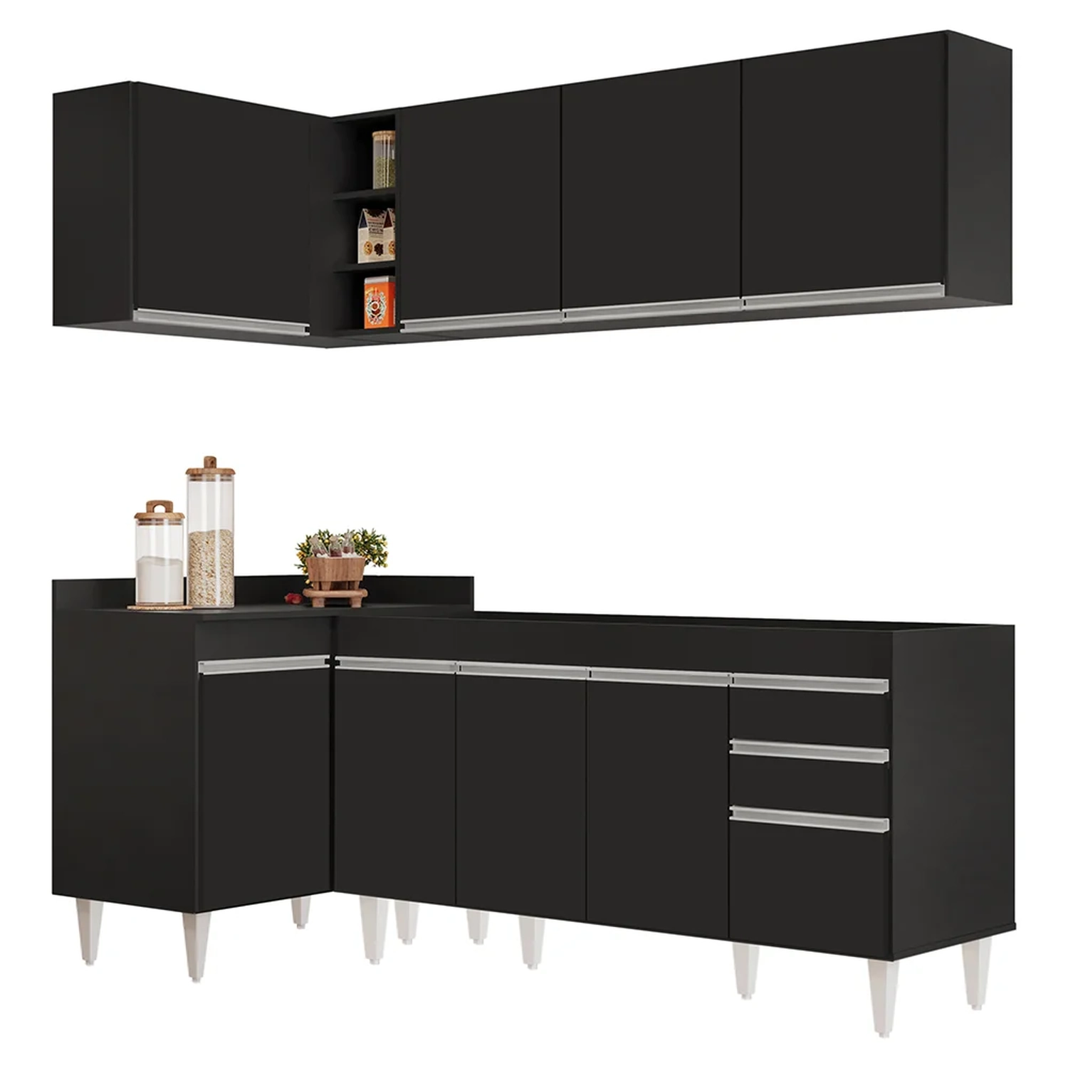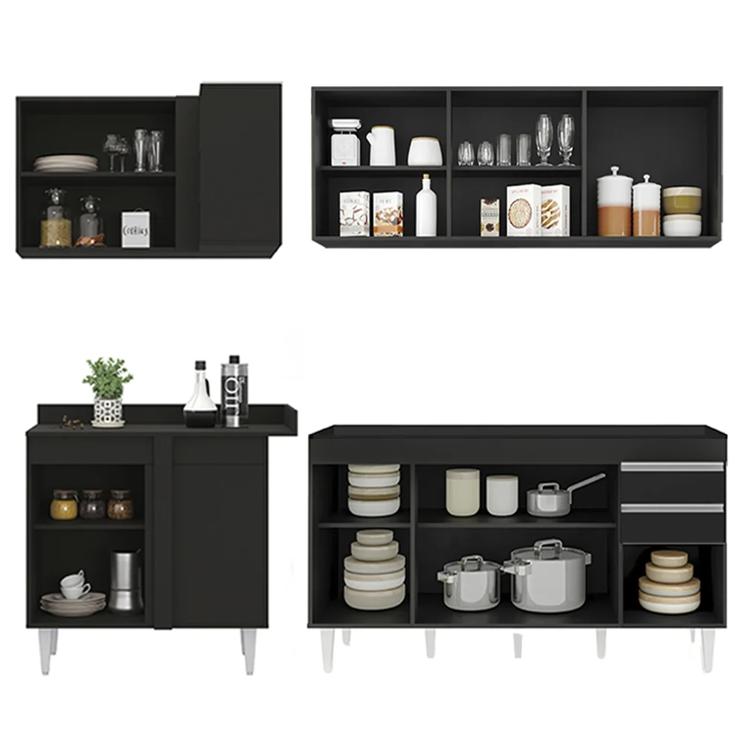 Procura uma cozinha prática e funcional?! Então, acaba de encontrar. Com o Armário de Cozinha Modulado de Canto Direito 4 Peças CP40 Balcão sem Tampo Preto, da Lumil, você terá tudo o que precisa ao seu alcance. Composto por 4 peças inteligentemente projetadas, esse armário modulado oferece uma distribuição interna perfeita para organizar todos os seus utensílios.