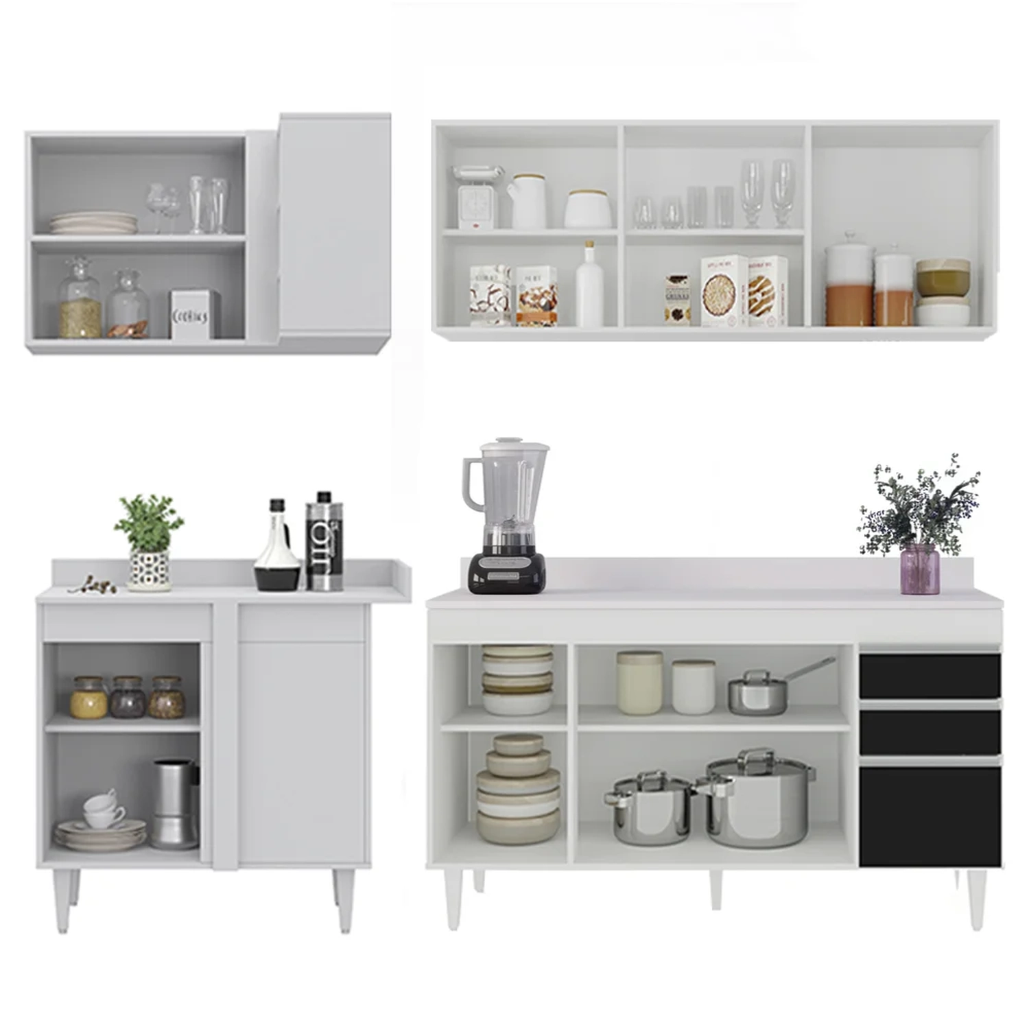 Procura uma cozinha prática e funcional?! Então, acaba de encontrar. Com o Armário de Cozinha Modulado de Canto Direito 4 Peças CP41 Balcão com Tampo Branco/Preto, da Lumil, você terá tudo o que precisa ao seu alcance. Composto por 4 peças inteligentemente projetadas, esse armário modulado oferece uma distribuição interna perfeita para organizar todos os seus utensílios.