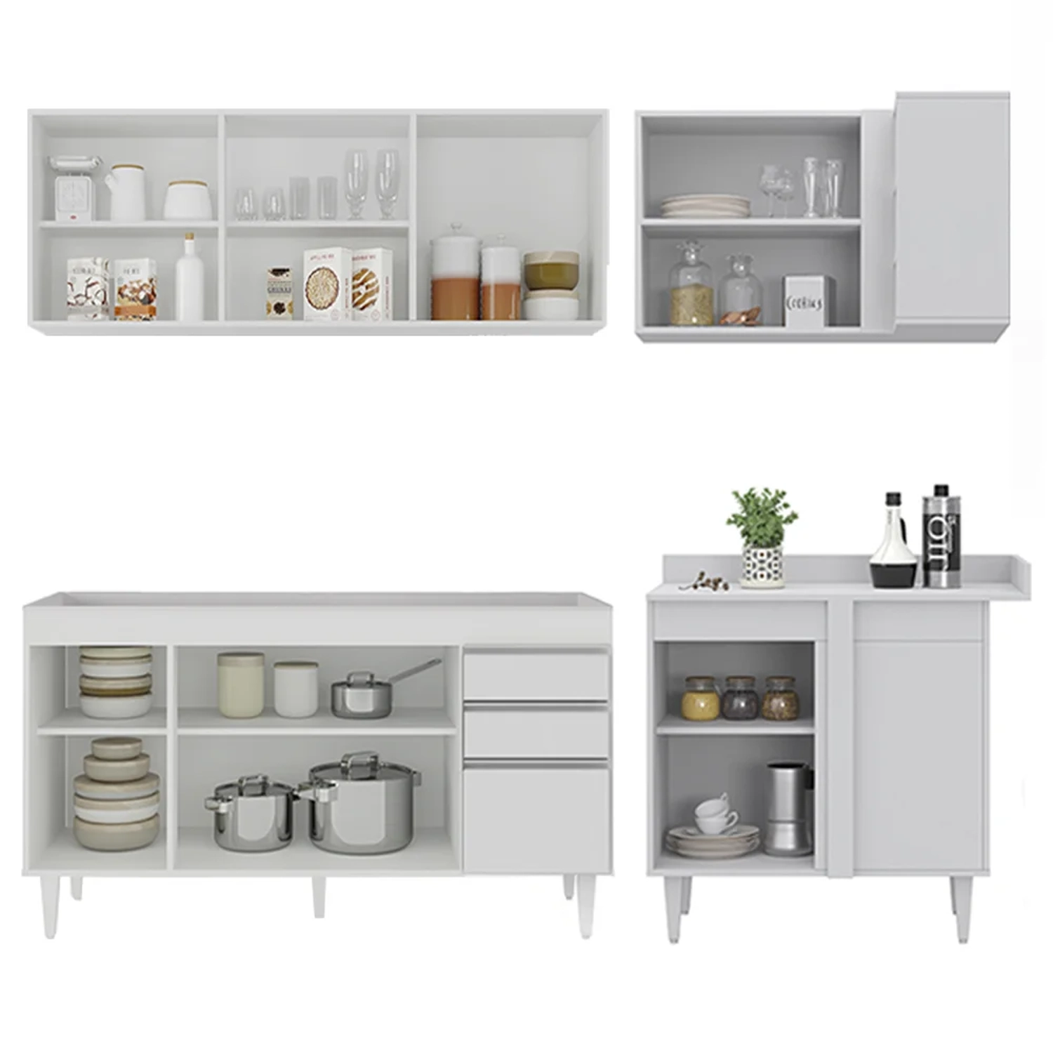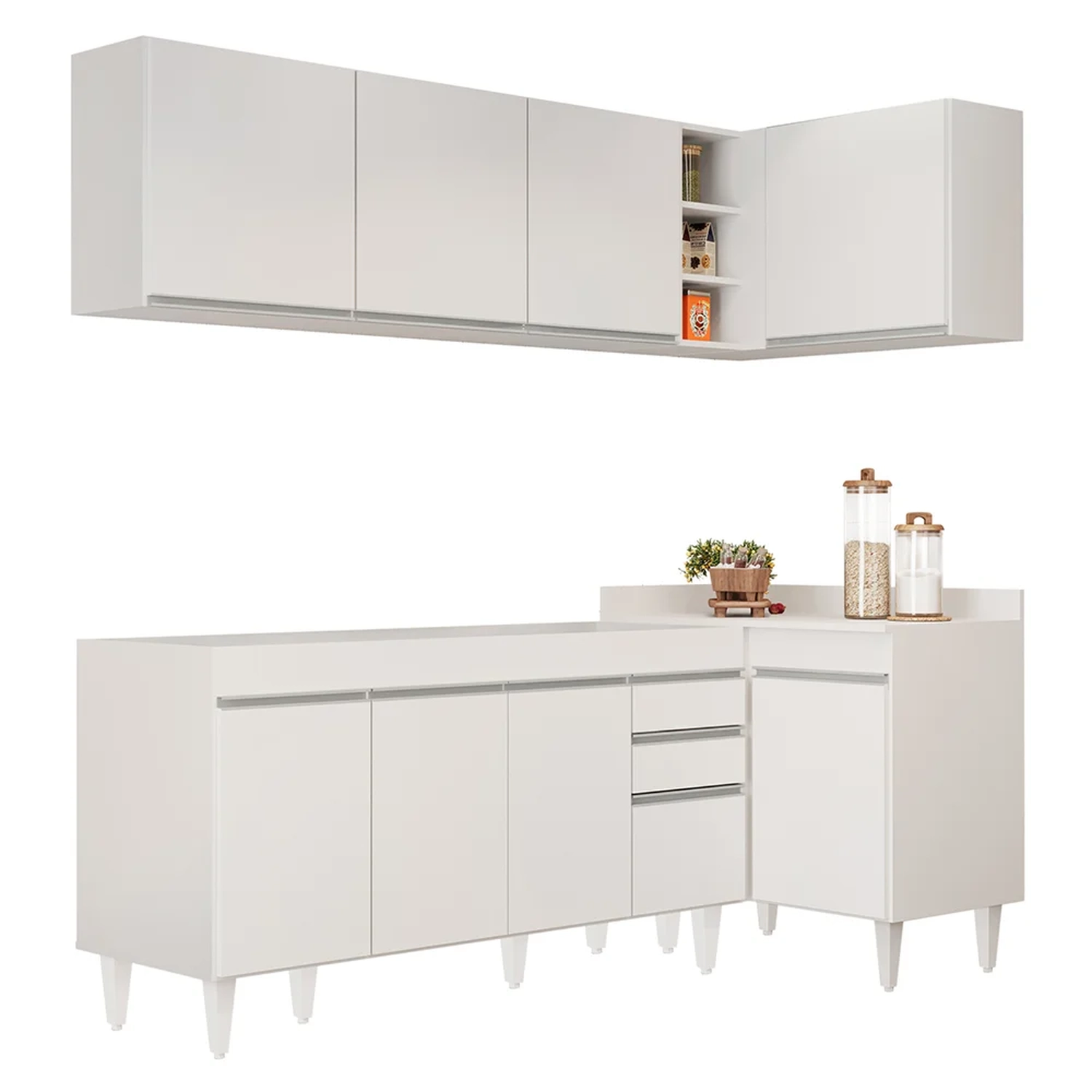 Procura uma cozinha prática e funcional?! Então, acaba de encontrar. Com o Armário de Cozinha Modulado de Canto Esquerdo 4 Peças CP49 Balcão sem Tampo Branco, da Lumil, você terá tudo o que precisa ao seu alcance. Composto por 4 peças inteligentemente projetadas, esse armário modulado oferece uma distribuição interna perfeita para organizar todos os seus utensílios.
