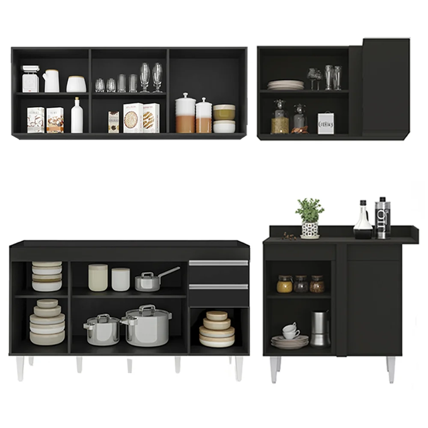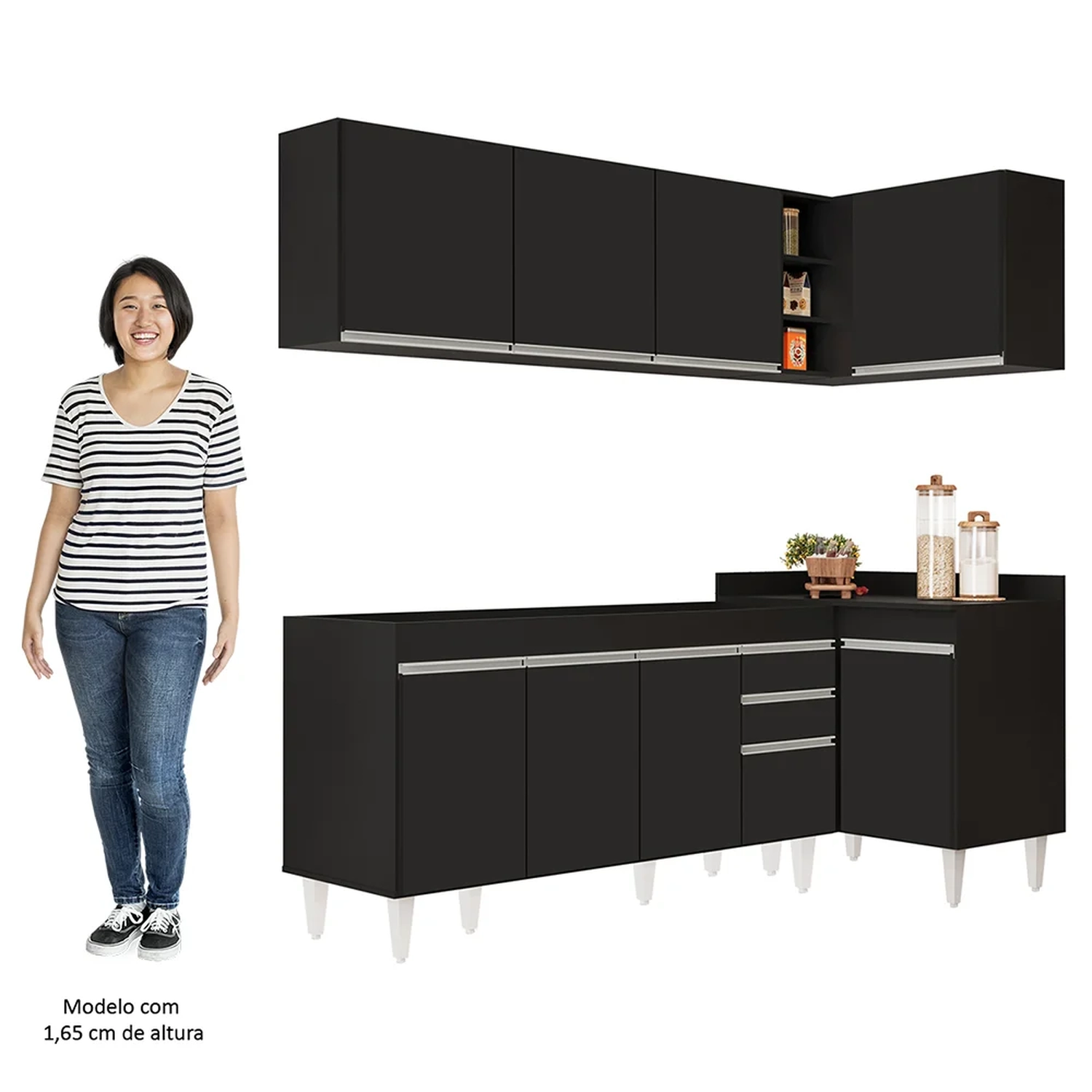 Procura uma cozinha prática e funcional?! Então, acaba de encontrar. Com o Armário de Cozinha Modulado de Canto Esquerdo 4 Peças CP49 Balcão sem Tampo Preto, da Lumil, você terá tudo o que precisa ao seu alcance. Composto por 4 peças inteligentemente projetadas, esse armário modulado oferece uma distribuição interna perfeita para organizar todos os seus utensílios.