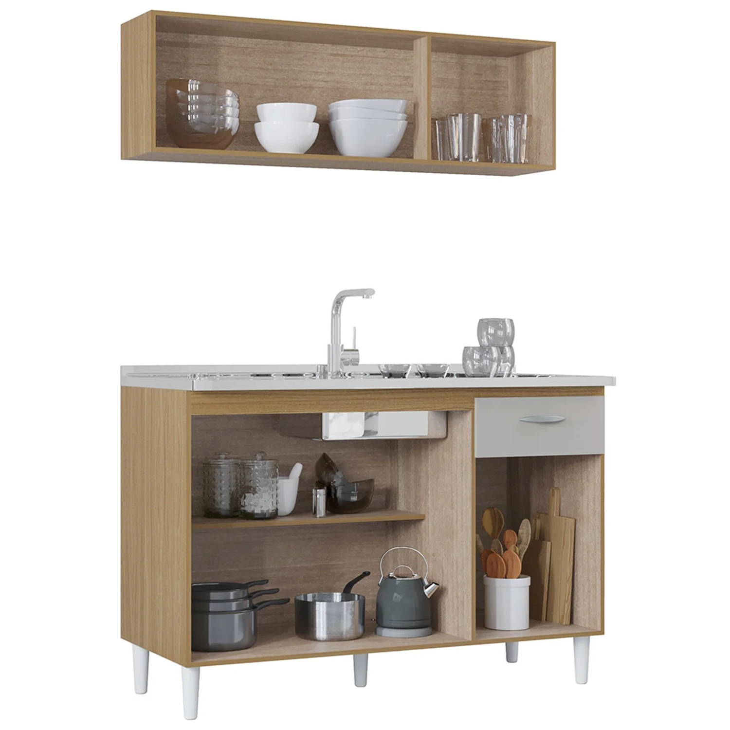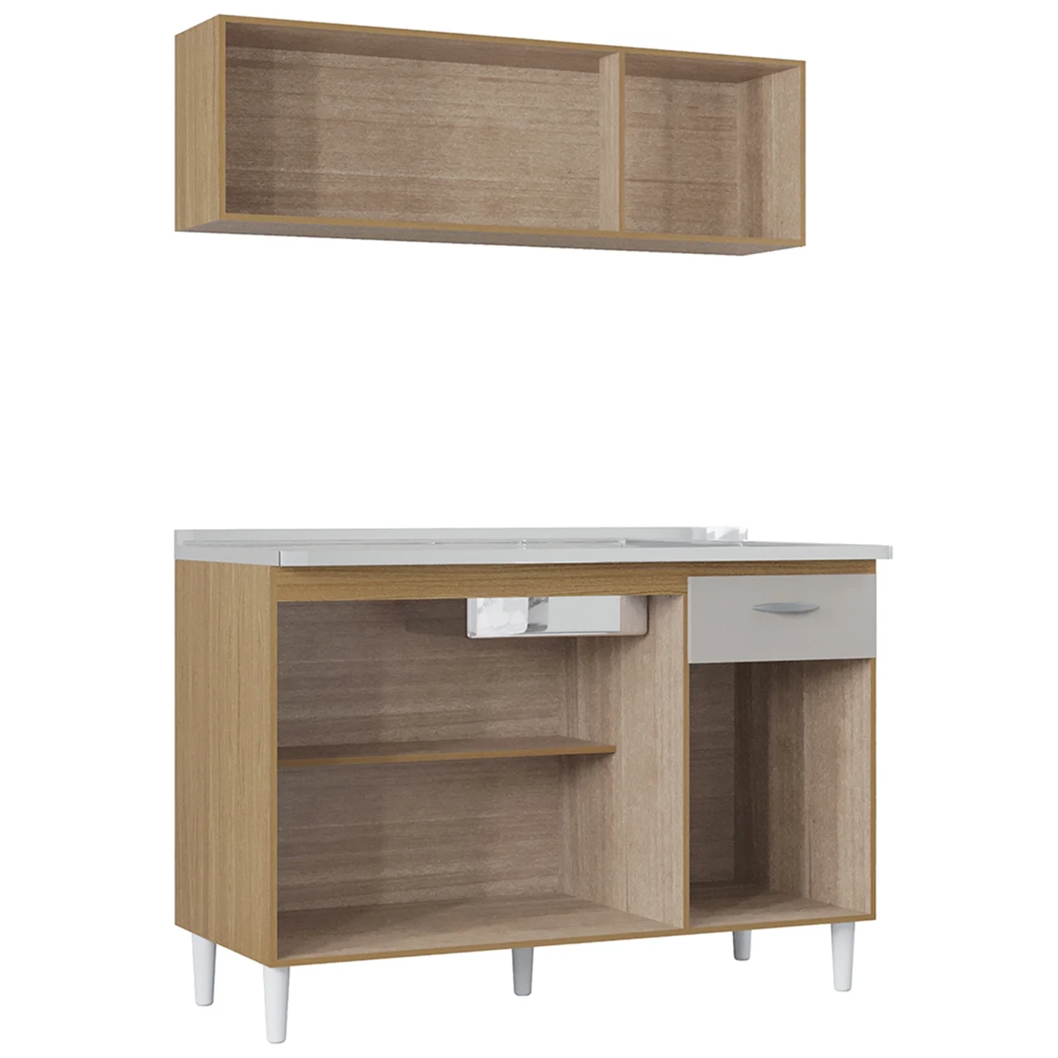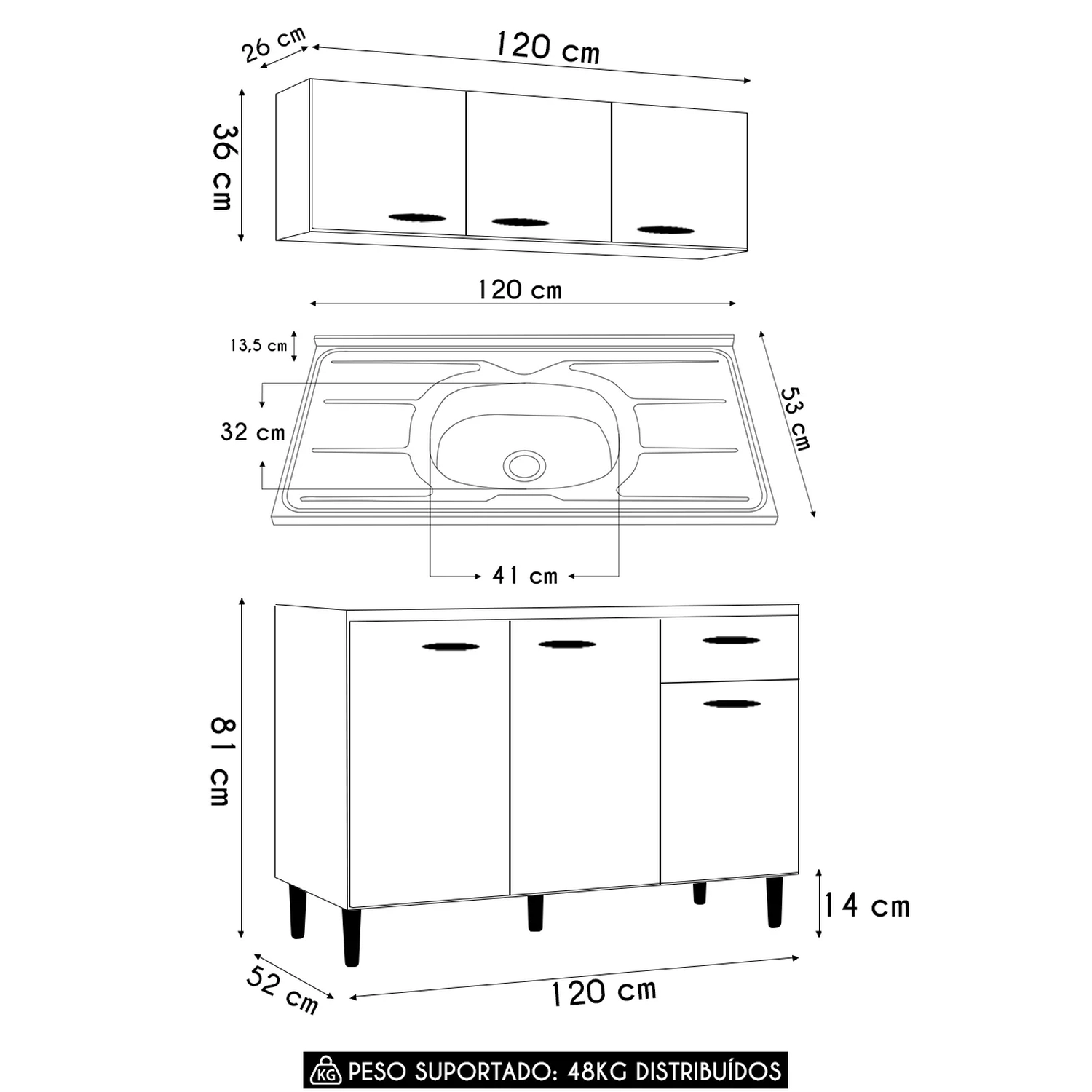 Conteúdo da Embalagem: 1 Armário aéreo, 1 Balcão, 1 Pia.