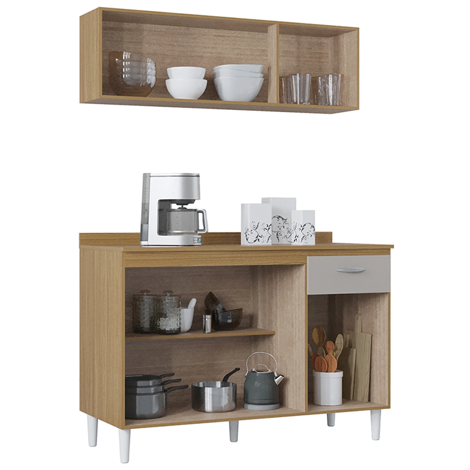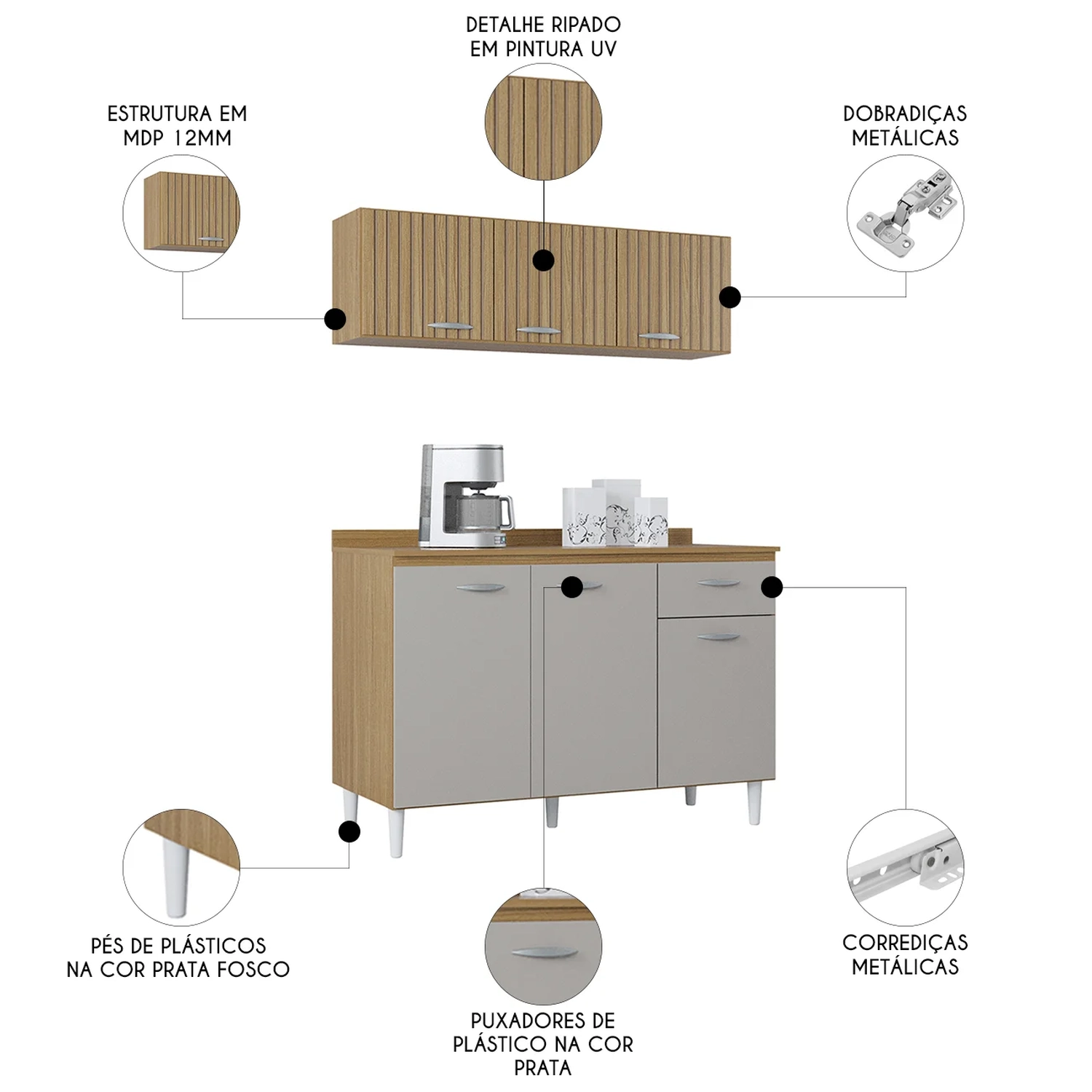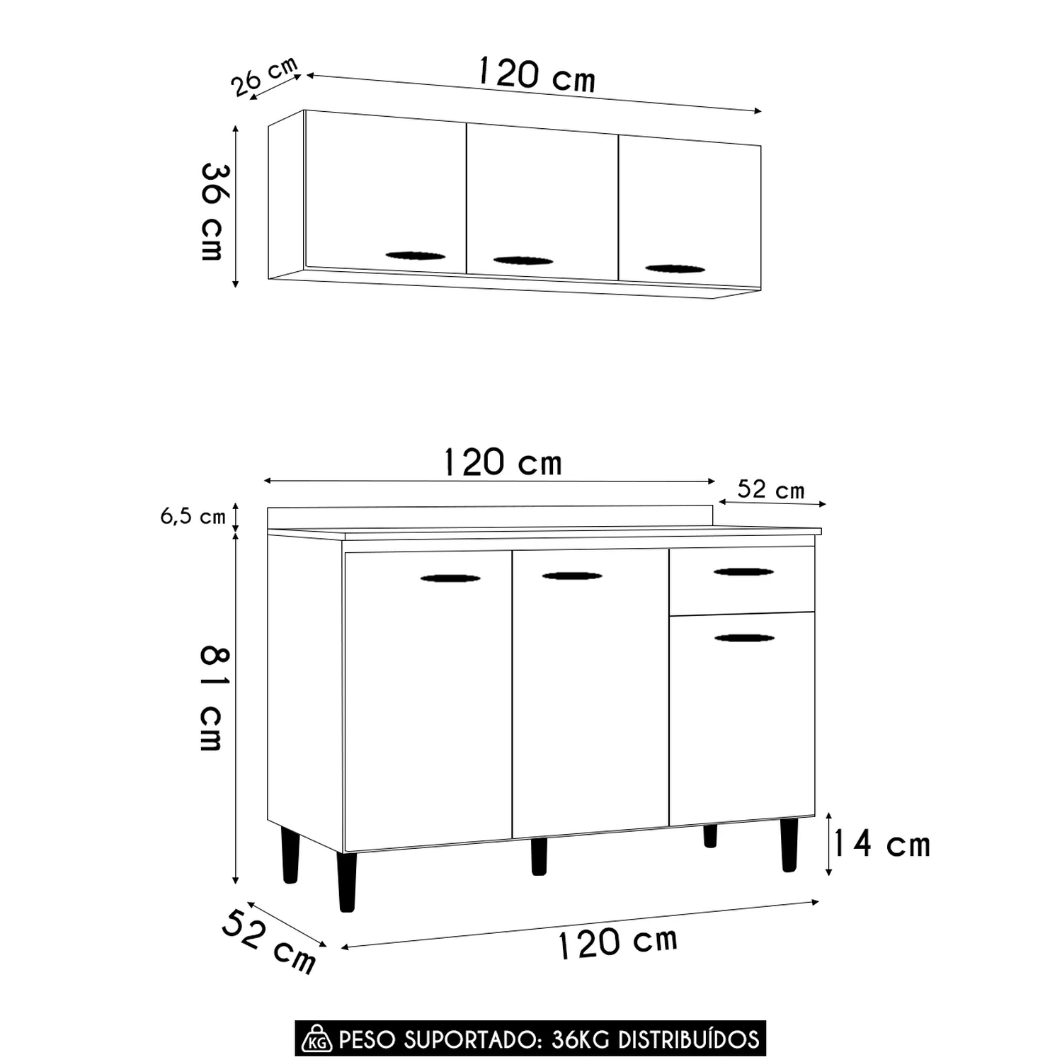 Conteúdo da Embalagem: 1 Armário Aéreo, 1 Balcão de Cozinha, 1 Tampo.
