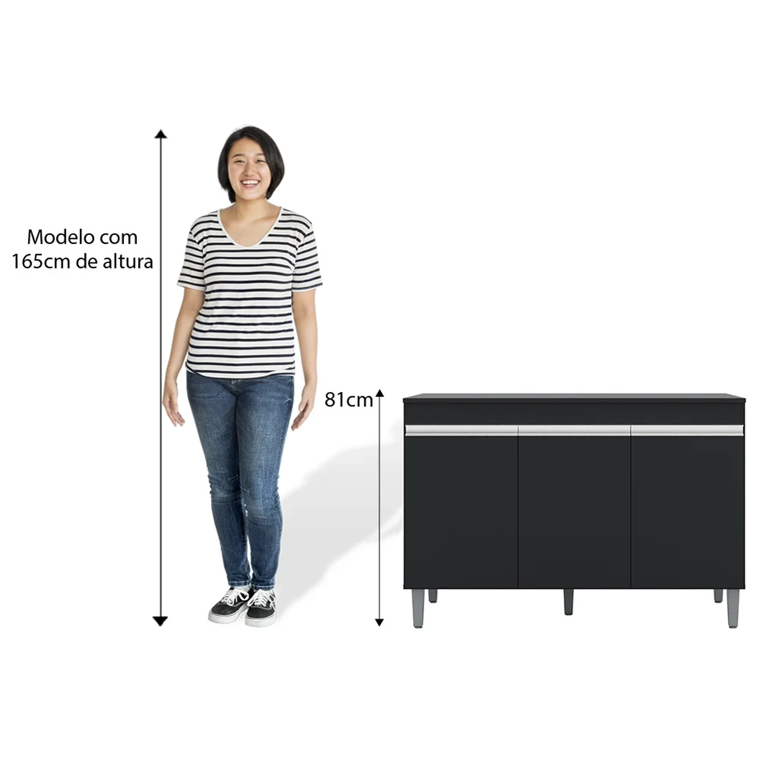 A correria de todo dia acaba por desorganizar sua cozinha? Tá faltando espaço para colocar suas coisas? Bem, isso pode melhorar com o Armário e Balcão Gabinete de Pia com Tampo 120cm 3 Portas Manu Preto - AJL Móveis.