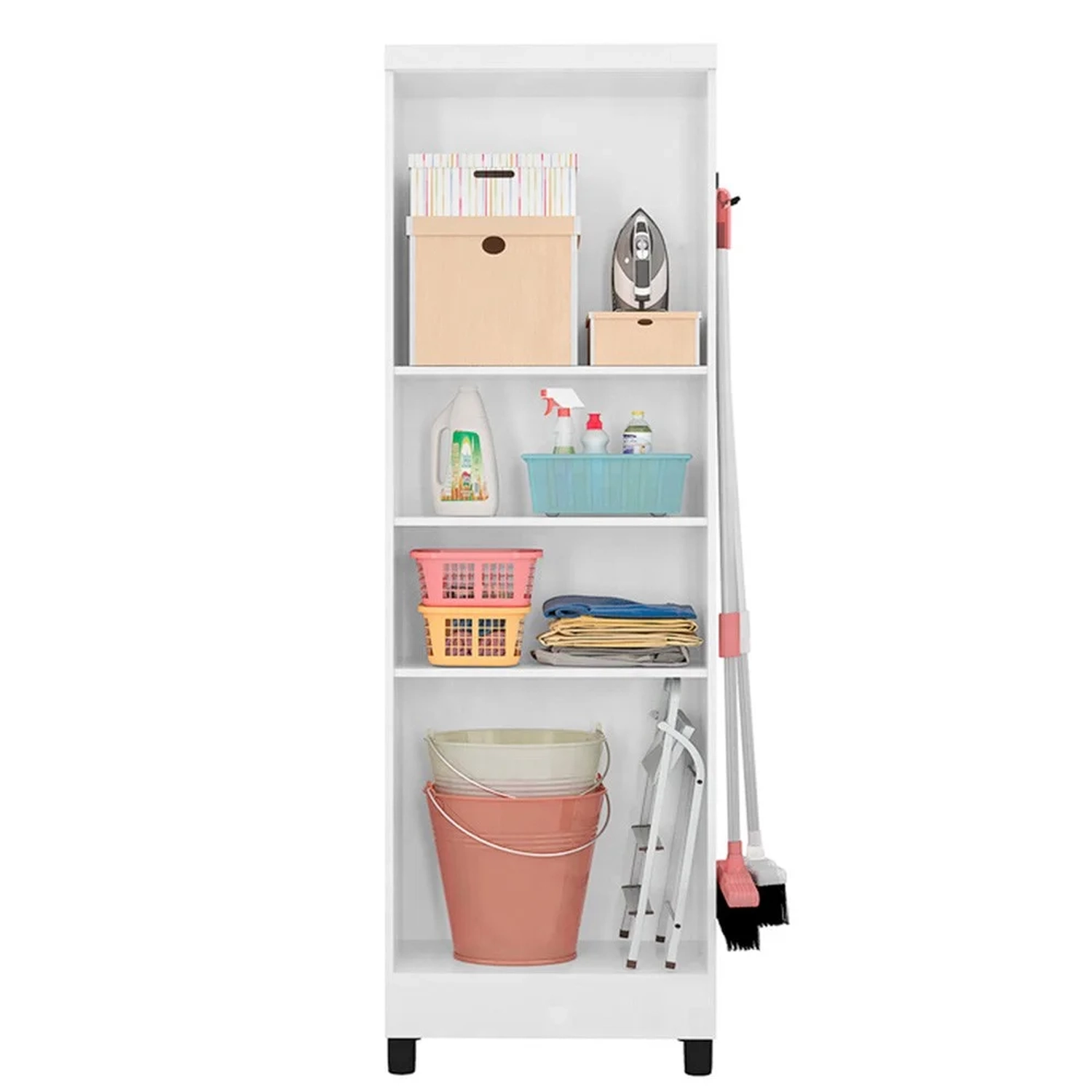 O Armário Multiuso 02 Portas Linus da Qmovi é um móvel bonito que vai trazer mais praticidade a sua casa, possui estrutura de excelente qualidade confeccionada em MDP de 12 e 15 mm e acabamento em pintura UV que proporciona maior durabilidade e resistência ao produto. Conta com varias repartições interna que possibilita manter seu interior sempre bem organizado. Ah, e ainda tem um gancho ao lado para dispor suas vassouras, demais né?