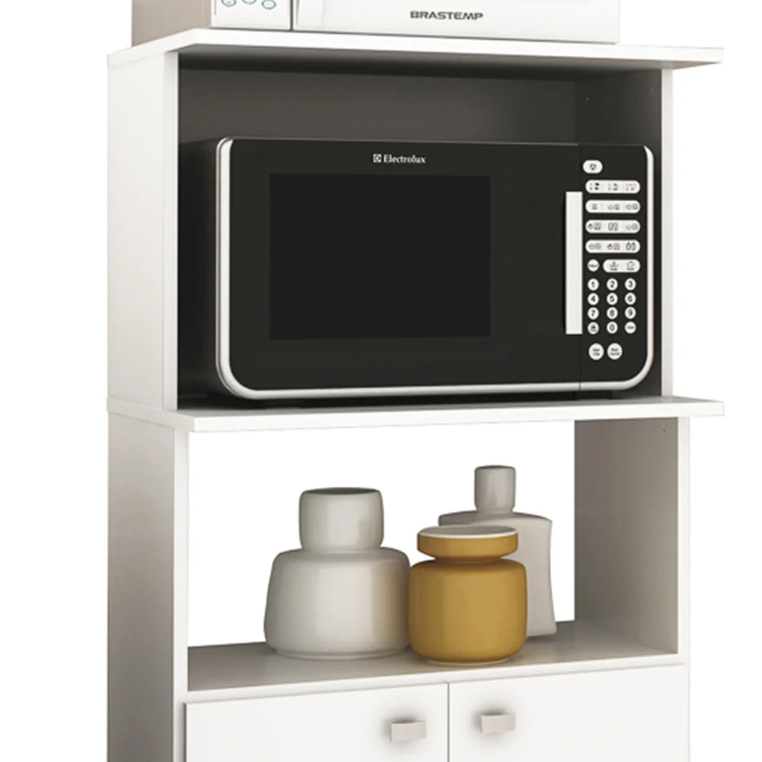 Esse balcão para cozinha é ideal se você precisa de organização e praticidade, pois conta com 2 portas e 2 nichos com espaço suficiente para forno ou micro ondas. Inclusive, possui design versátil que pode auxiliar tanto na praticidade da cozinha quanto na decoração. Ah, e é um balcão fabricado em MDP de qualidade com acabamento em pintura BP para conferir durabilidade e resistência ao móvel.