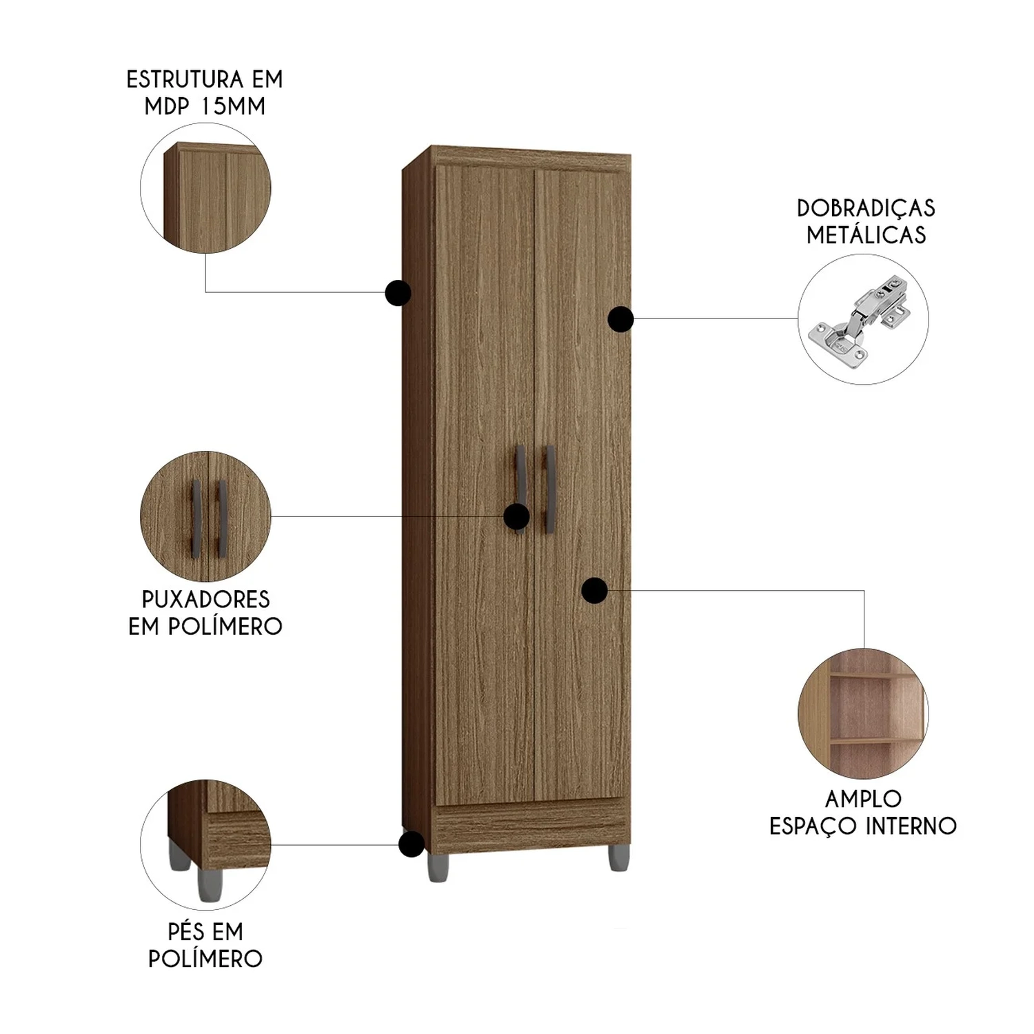 Com design tradicional, esse armário multiuso 2 portas pode ser aproveitado para organizar os objetos de Cozinha, lavanderia e Quarto. Fabricado em MDP, este armário é ideal para qualquer espaço. Suas duas portas, equipadas com dobradiças metálicas, garantem um acesso fácil aos seus itens, enquanto os puxadores de plástico adicionam um toque moderno e funcional. Além das portas, o Armário Multiuso conta com quatro prateleiras internas, proporcionando amplo espaço para organizar livros, objetos decorativos e utensílios diversos. O acabamento em pintura UV não só confere um visual sofisticado, mas também protege a superfície contra riscos e manchas, tornando a limpeza rápida e simples. Os pés em plástico cinza completam o design sofisticado e garante estabilidade ao móvel. Não deixe a desordem dominar seu espaço este Multiuso Funcional é a escolha ideal para quem valoriza organização e bom gosto.