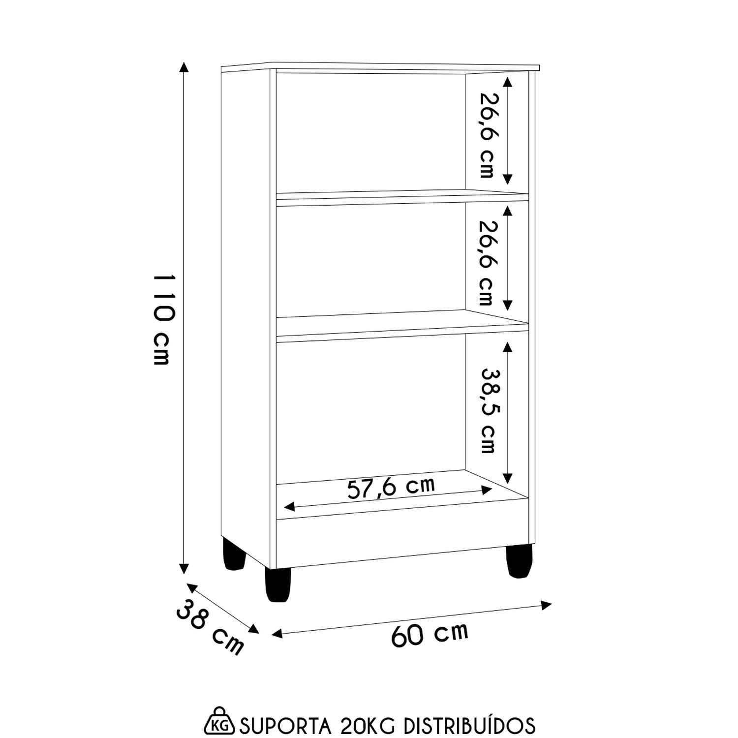 Peso Suportado: 20 Kg distribuídos.