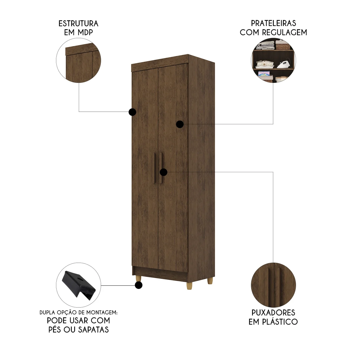 Com design tradicional, possui duas portas e cinco prateleiras internas que acomodam desde utensílios da Cozinha até roupas e acessórios.