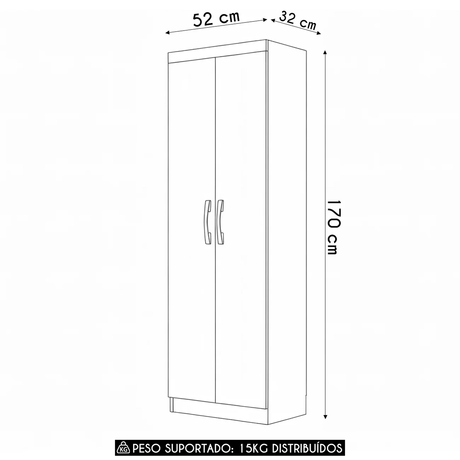 Internamente conta com três prateleiras bem distribuídas, perfeitas para organizar produtos de limpeza ou até objetos pessoais. Externamente, possui duas portas que mantêm o visual sempre limpo e discreto.