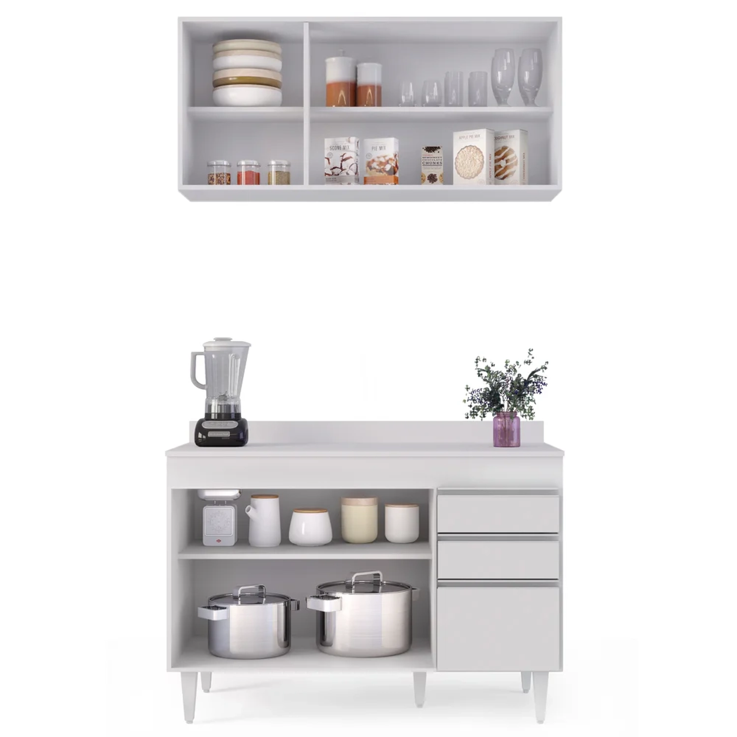 Conteúdo da Embalagem: 1 Armário Aéreo, 1 Balcão, 1 Tampo.
