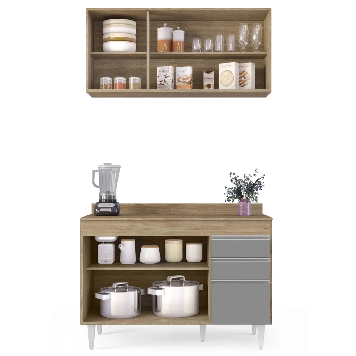 Conteúdo da Embalagem: 1 Armário Aéreo, 1 Balcão, 1 Tampo.