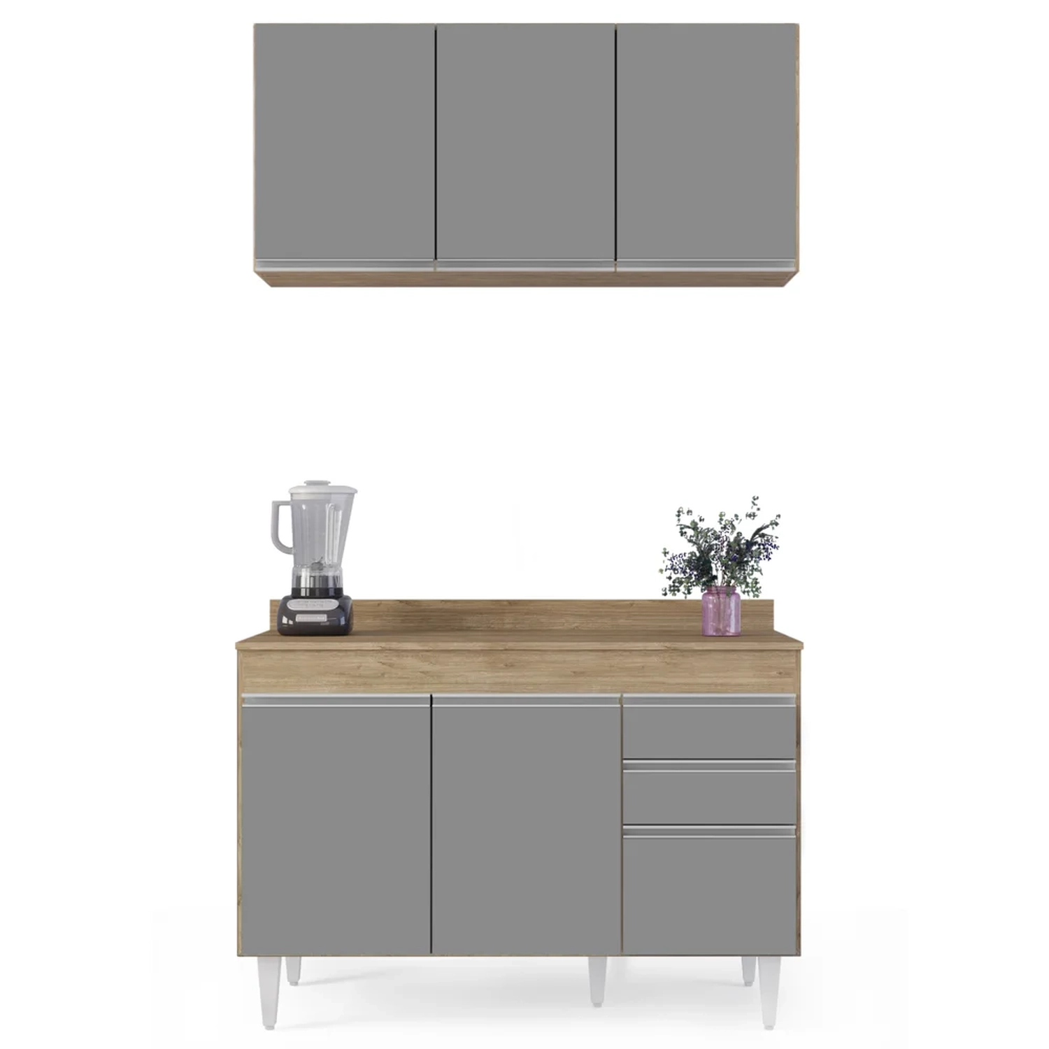 Confira o Armário aéreo Virgínia e Balcão para pia com Tampo Michigan 120cm Castanho/Cinza imperdível que a Lumil preparou e tenha a cozinha moderna que sempre quis!!