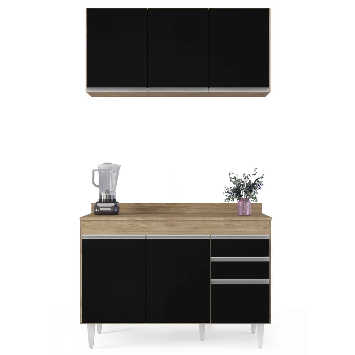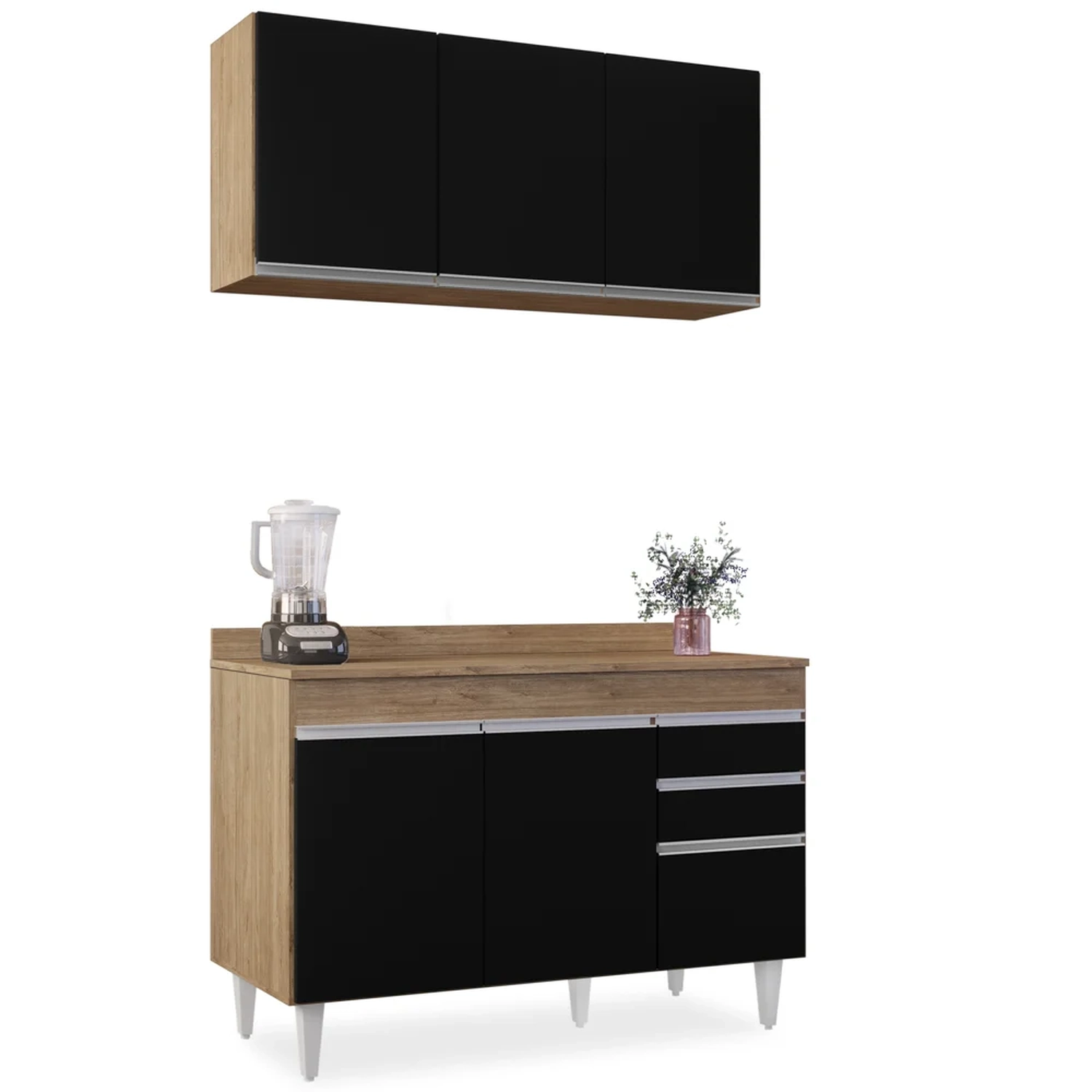Confira o Armário aéreo Virgínia e Balcão para pia com Tampo Michigan 120cm Castanho/Preto imperdível que a Lumil preparou e tenha a cozinha moderna que sempre quis!!