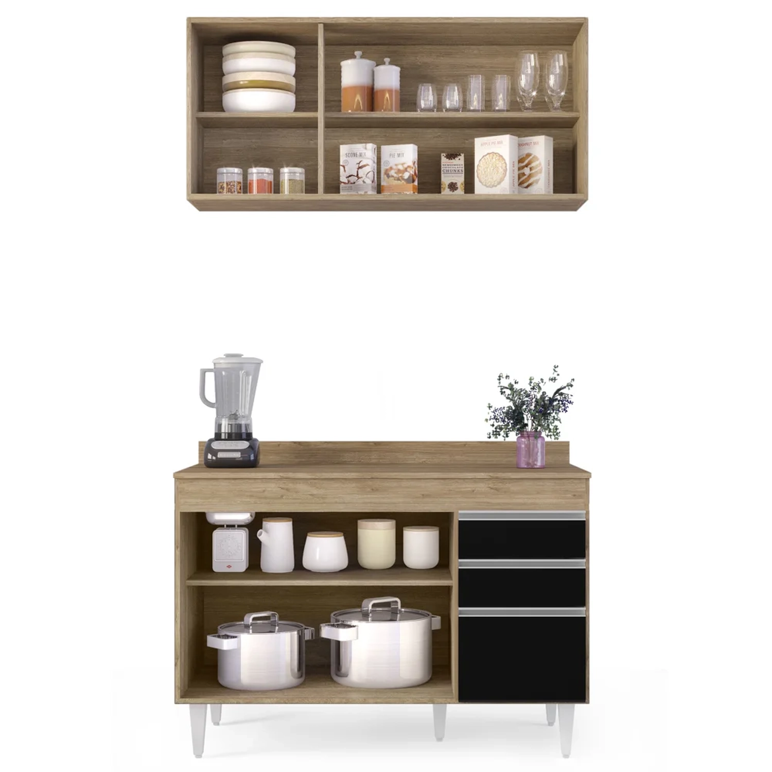 Conteúdo da Embalagem: 1 Armário Aéreo, 1 Balcão, 1 Tampo.