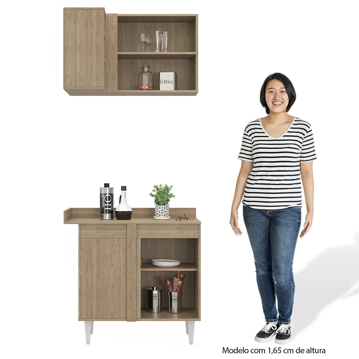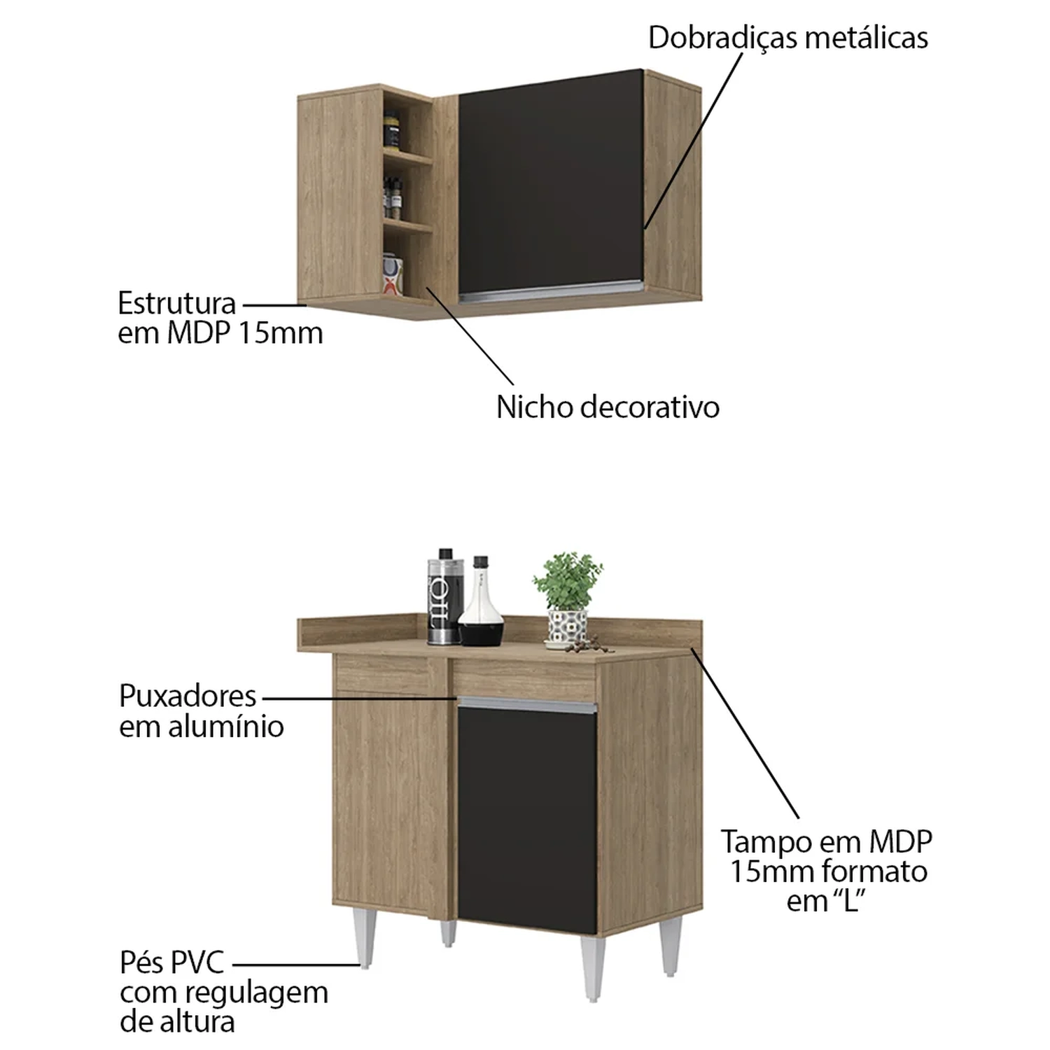 Conteúdo da Embalagem: 1 Armário aéreo, 1 Balcão.