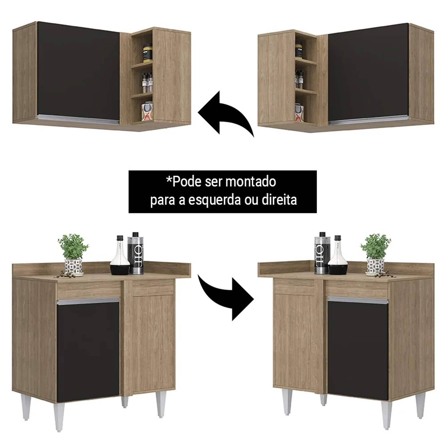 Você está procurando uma forma de otimizar o espaço da sua cozinha e deixá-la mais bonita e funcional? Então você precisa conhecer o Balcão Denver e Armário Austin de Canto Castanho/Preto, da Lumil.