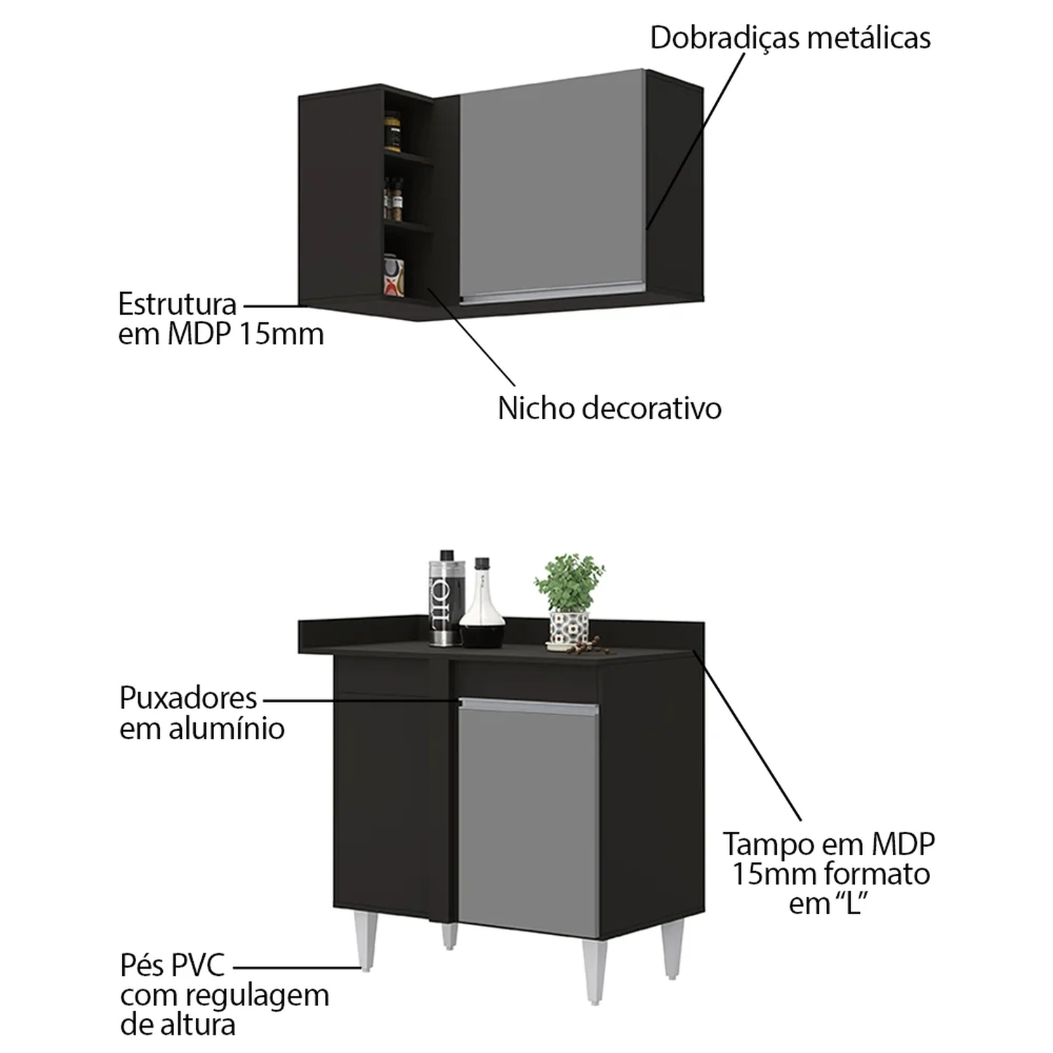 Você está procurando uma forma de otimizar o espaço da sua cozinha e deixá-la mais bonita e funcional? Então você precisa conhecer o Balcão Denver e Armário Austin de Canto Preto/Cinza, da Lumil.