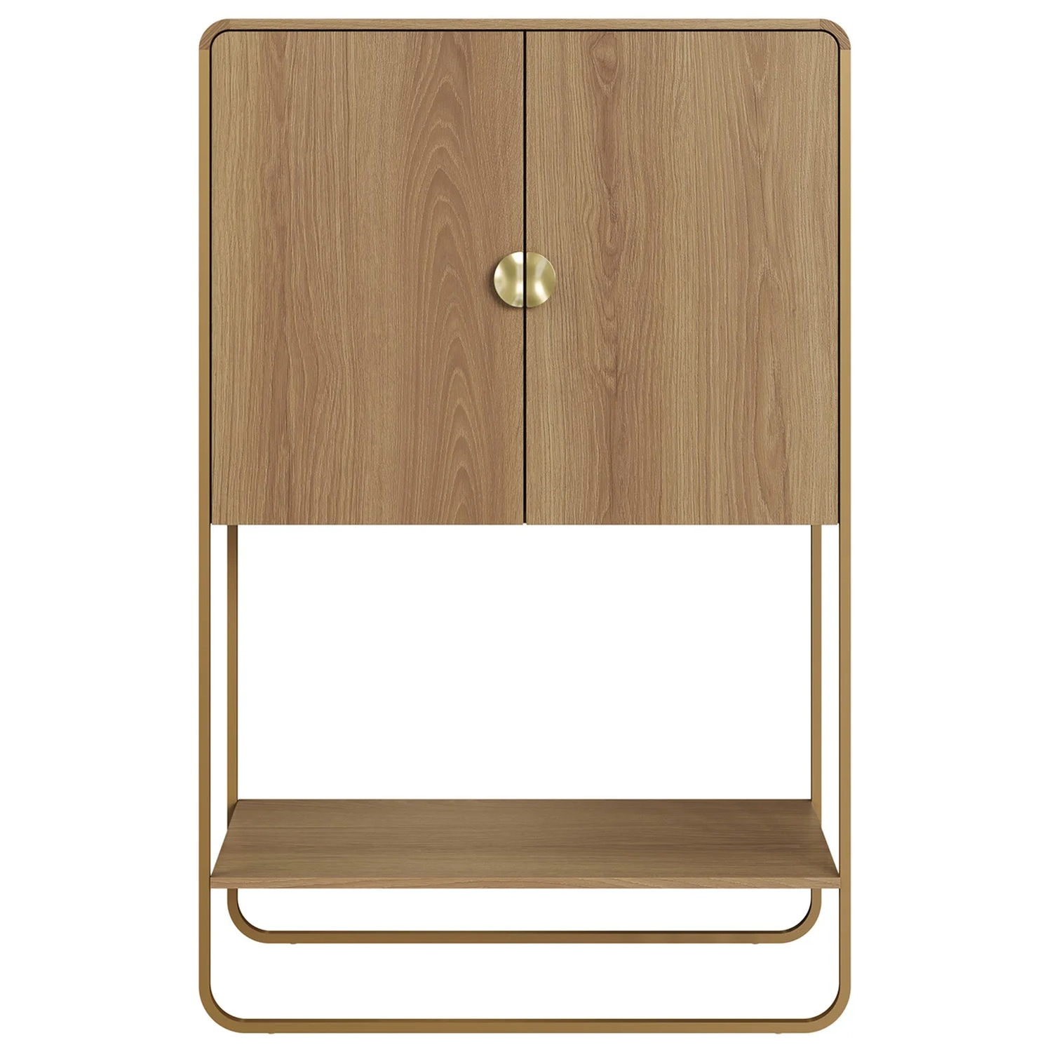 Os puxadores dourados em poliestireno deixam a peça ainda mais elegante, enquanto as dobradiças metálicas garantem que tudo funcione direitinho, dia após dia.