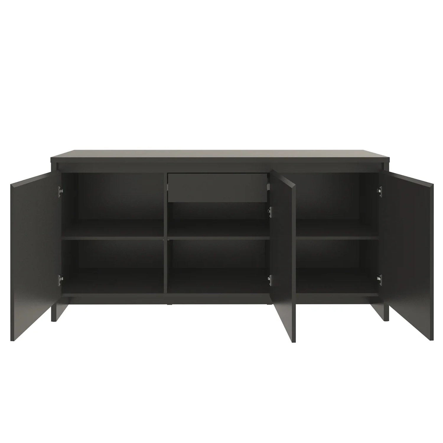 O Balcão Aparador Buffet 3 Portas Madrid C14 Preto, da Mpozenato, é a escolha ideal para elevar a decoração e funcionalidade da sua Sala de Estar.