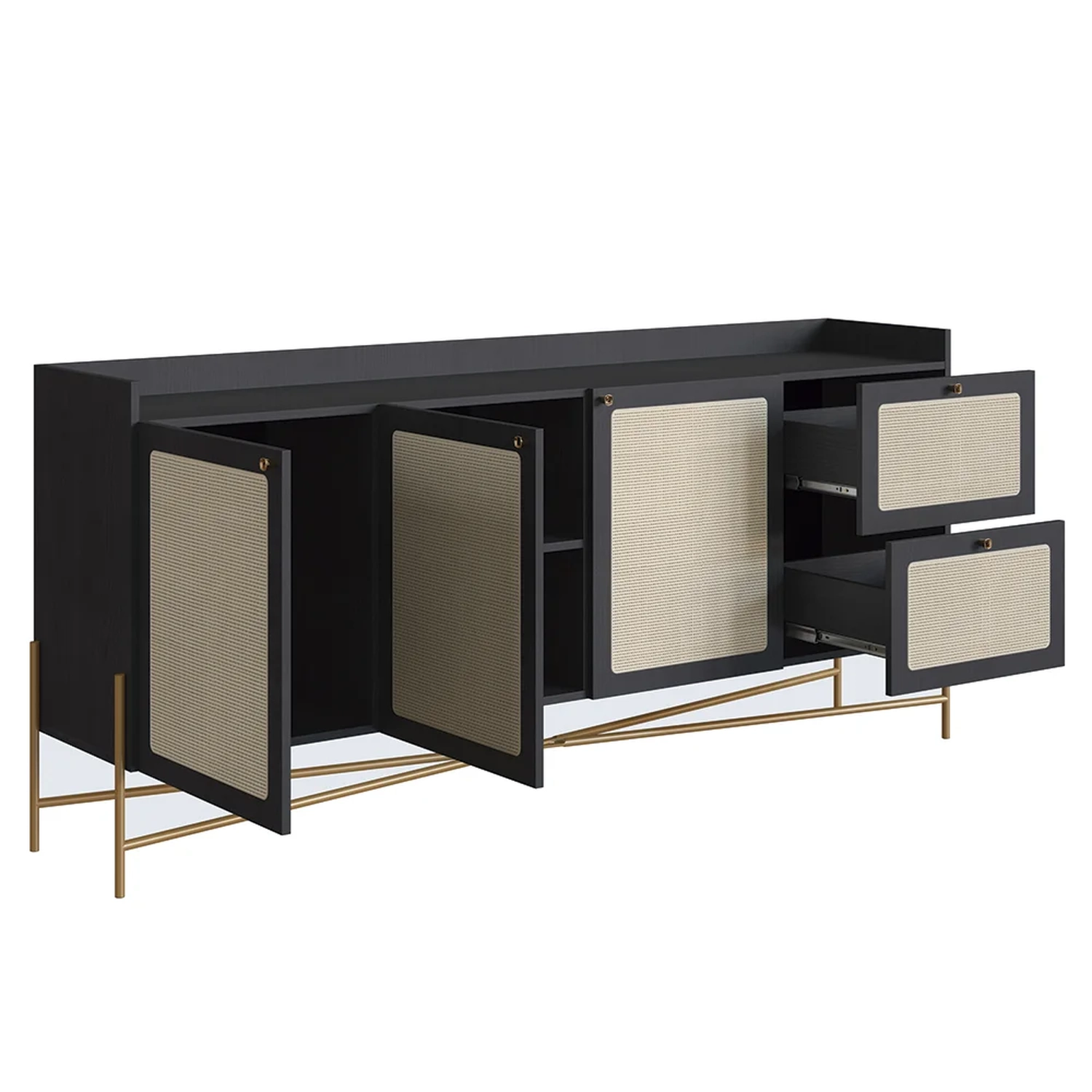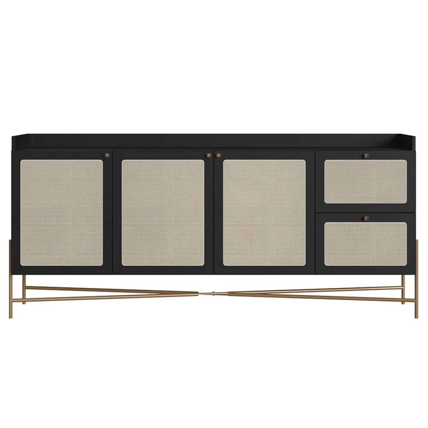 O Balcão Aparador Buffet 3 Portas Pé Metal Arlo A10 Nero/Dourado, da Mpozenato, é uma peça que combina funcionalidade e estética moderna de maneira exemplar.