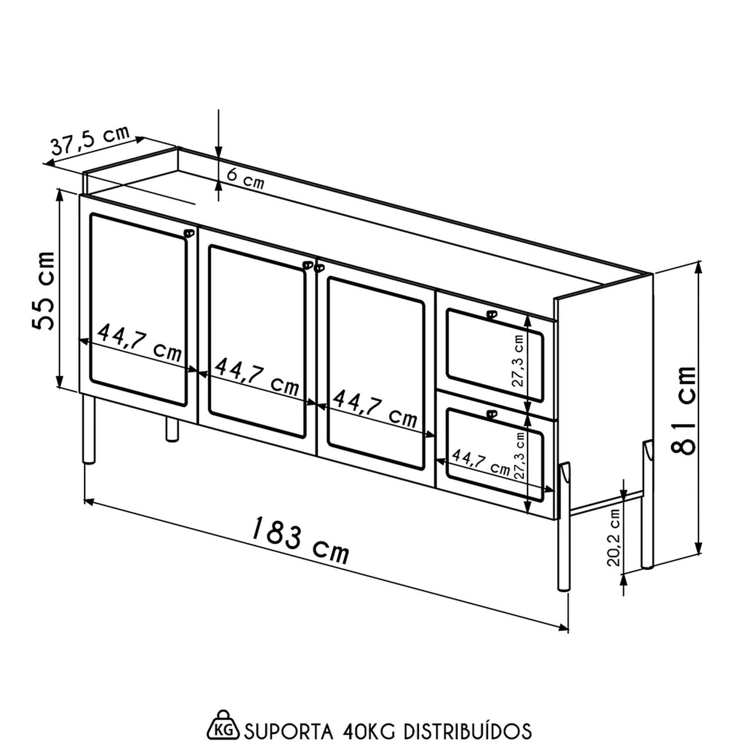 Esse Balcão Buffet é ideal para quem deseja adicionar um elemento de sofisticação à Sala de Estar. Construído com uma estrutura robusta em MDP de 15mm e um acabamento BP de alta qualidade, ele também possui 3 portas convencionais equipadas com dobradiças metálicas resistentes à corrosão. As gavetas, com corrediças telescópicas, proporcionam um espaço interno generoso e são equipadas com puxadores de poliestireno que facilitam o manuseio. Além disso, o Aparador se destaca pelos detalhes em tela sintética de PVC com poliéster, que são aplicados nas portas e gavetas, conferindo um toque retrô ao Aparador Bar. Os pés em madeira maciça de eucalipto, com sapatas emborrachadas nas extremidades, garantem estabilidade e evitam o atrito do móvel com o piso. Este balcão não é apenas funcional, mas também é uma peça de destaque que pode realçar a decoração de qualquer ambiente.