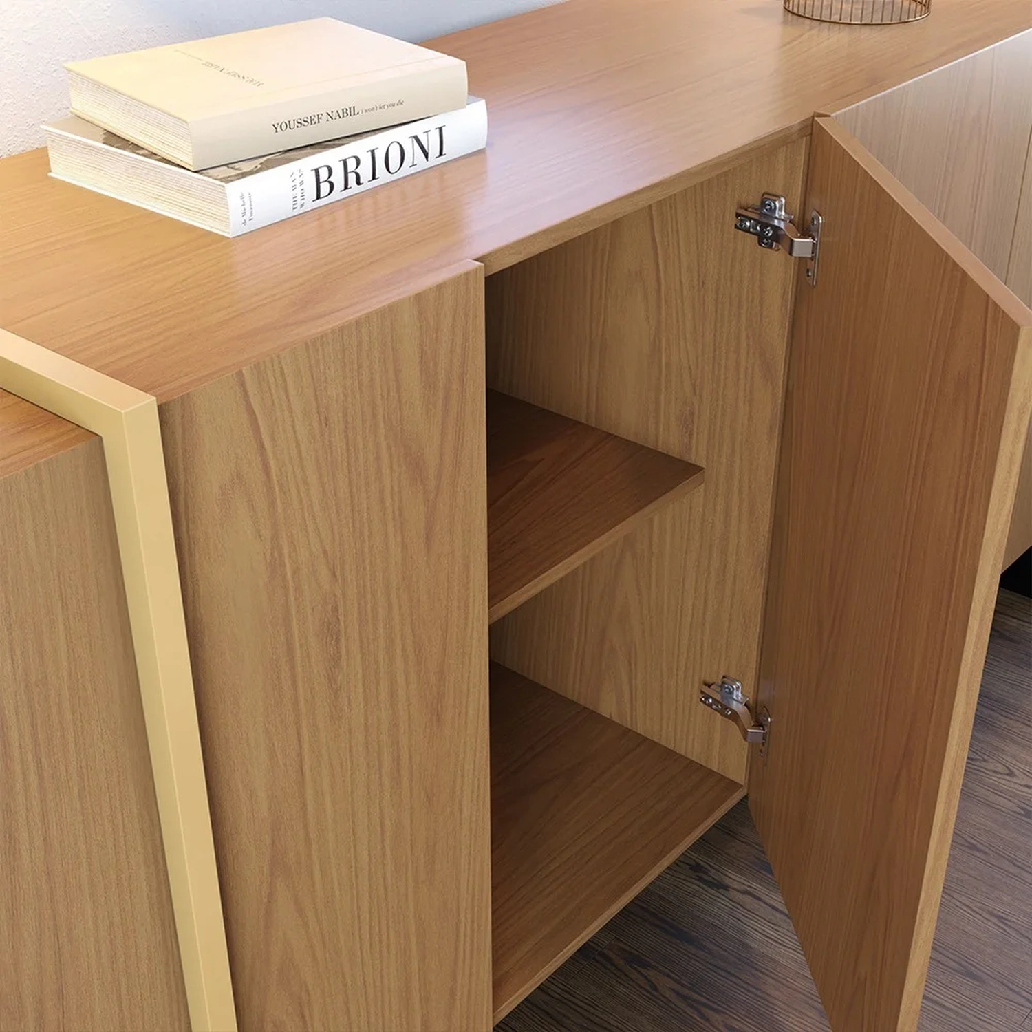 Além disso, o amplo espaço interno conta com excelente repartição para guardar louças, aparelhos de jantar, itens de mesa posta e afins, de modo que fique tudo organizado e com fácil acesso na hora de montar a mesa de jantar. Para completar, ainda possui um tampo amadeirado resistente e funcional, já que você pode dispor objetos decorativos, como também aproveitá-lo como suporte para as refeições. Em outras palavras, um balcão que combina funcionalidade e design de qualidade em um só produto.